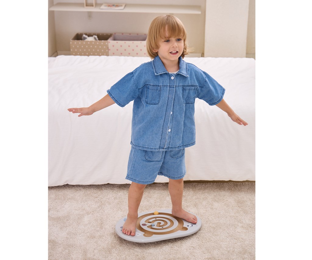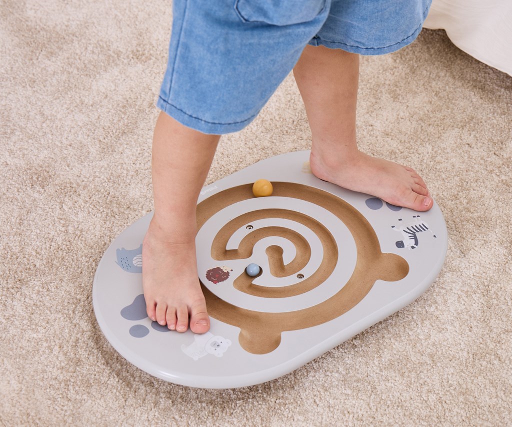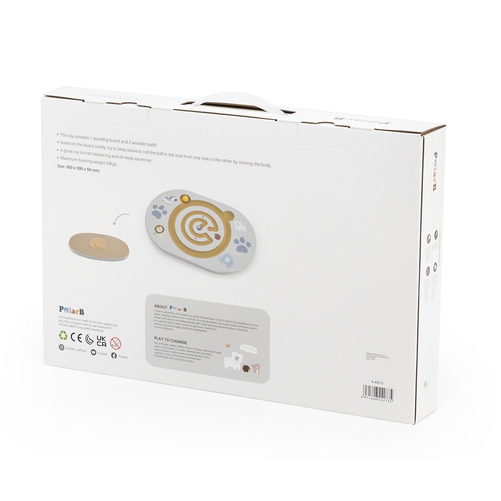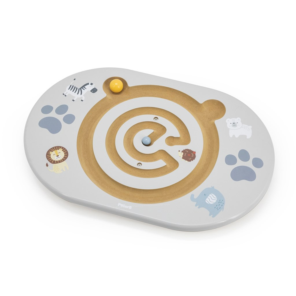 Balancující labyrint je ideální hračka pro děti od 4 let, která podporuje rozvoj rovnováhy, pohybové koordinace a koncentrace. Sada obsahuje balanční desku s vyfrézovaným labyrintem ve tvaru medvídka a dvě dřevěné kuličky. Úkolem dítěte je pomocí balancování posouvat kuličku po dráze, čímž si hravou formou trénuje rovnováhu a kontrolu těla.