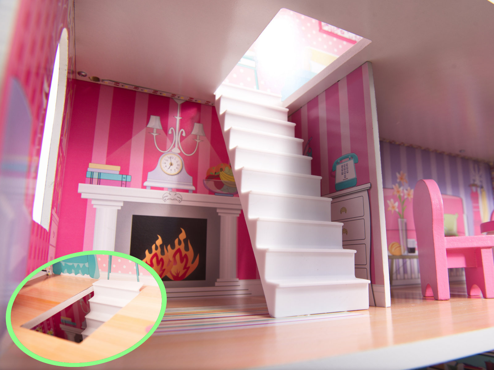 - LED OSVĚTLENÍ - dům byl vybaven efektním LED osvětlením, které nejen skvěle vypadá, ale může fungovat i jako noční lampa. Svítidla se připevňují na samolepicí pásku, kterou jednoduše nalepíte na stropy a stěny domu. Osvětlení lze připevnit jakýmkoliv způsobem. Napájeno AA bateriemi.