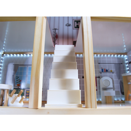 Krásný dřevěný domeček pro panenky v moderním stylu bude splněným snem každého dítěte.