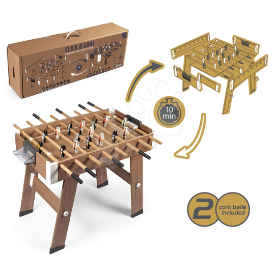 Smoby Dřevěný fotbalový stůl Click&Goal Soccer Table skládací a rozkládací za 10 minut s 2 míčky od 8 let