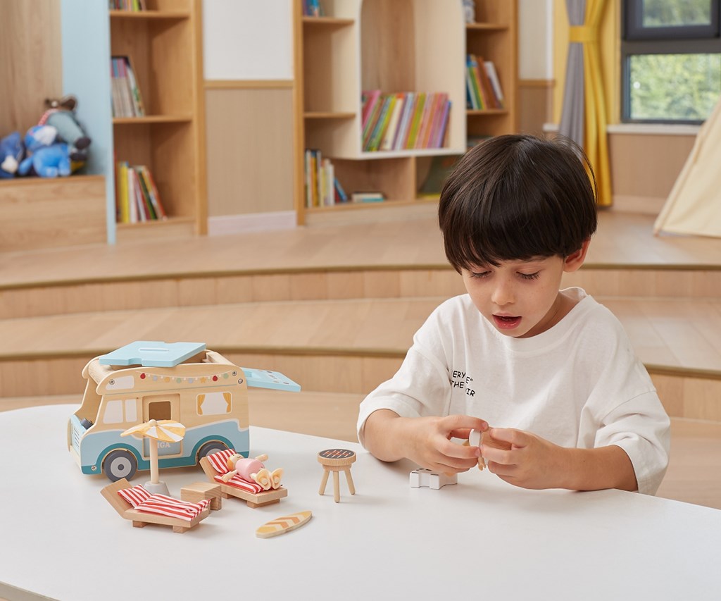 Rozvoj představivosti – karavan a doplňky umožňují dětem vytvářet vlastní scénáře, jako výlety, plážové dny či grilování
