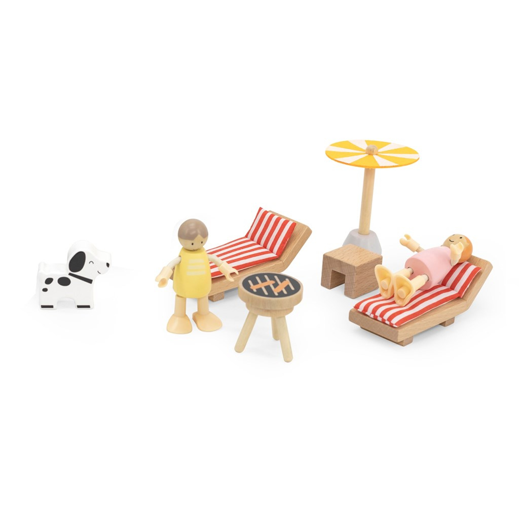 Multifunkčnost – sada obsahuje mnoho doplňků (panenky, lehátka, gril, slunečník, pejsek aj.), které poskytují rozmanité možnosti hry a zabaví dítě po dlouhou dobu