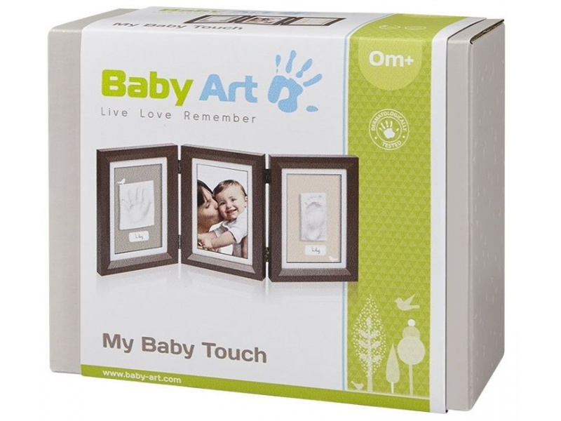 Rámeček Baby Art My Baby Touch Double nabízí tři oddělené prostory pro fotografii a otisk ručičky a nožičky Vašeho miminka. Vyrobte si krásnou dekoraci, která vám zároveň pomůže uchovat vzpomínky na krásné období po narození vašeho dítěte. Použití dle přiloženého návodu je jednoduché, rychlé a bez nepořádku. Balení obsahuje rámeček a vše, co potřebujete k výrobě otisku. Výrobek je dermatologicky testován a je pro vaše dítě 100% zdravotně nezávadný.