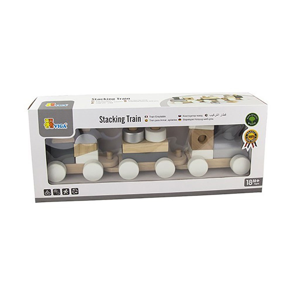 Šedobílý vláček s tahacími vagónky je určen pro aktivní batolata.Vláček rozvíjí koordinaci ruka-oko, podporuje logické myšlení a umožňuje kreativní hru.