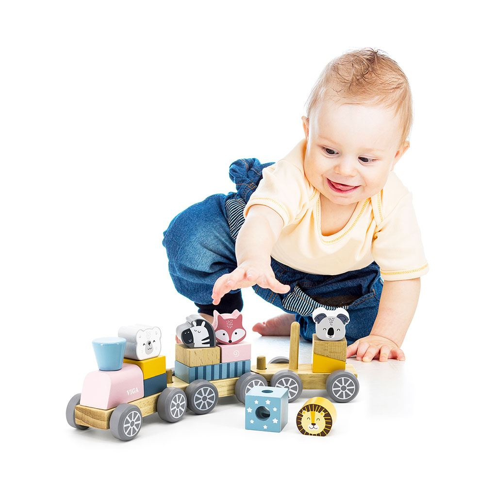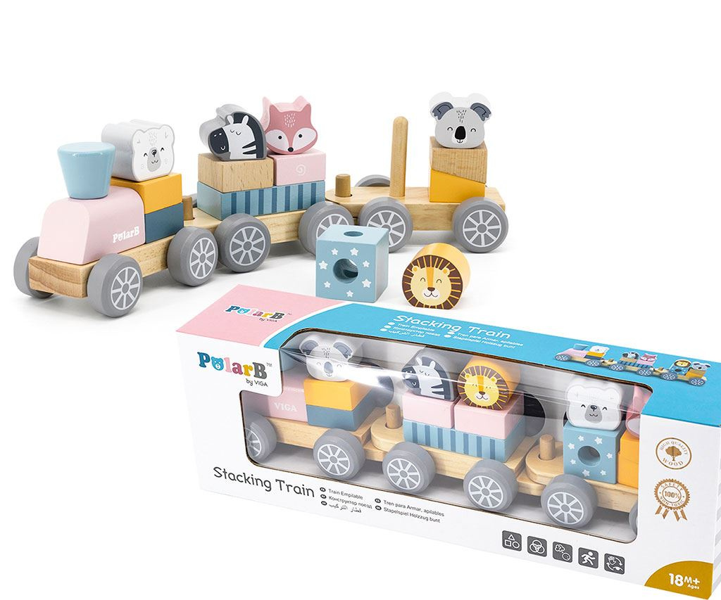 Dřevěný vláček s kostkami od společnosti Viga z kolekce Lední medvěd je hračka, kterou si zamiluje každé dítě. Tlumené barvy a bloky, které se snadno uchopují, povzbudí každé batole ke hře. Dřevěný vláček s pohyblivými vagónky je zajímavá hračka, která rozvíjí motorickou koordinaci dítěte a přináší spoustu zábavy. Barevné kostky v sadě lze spojovat umístěním dílků na dřevěné kolíčky umístěné na třech pojízdných základnách.