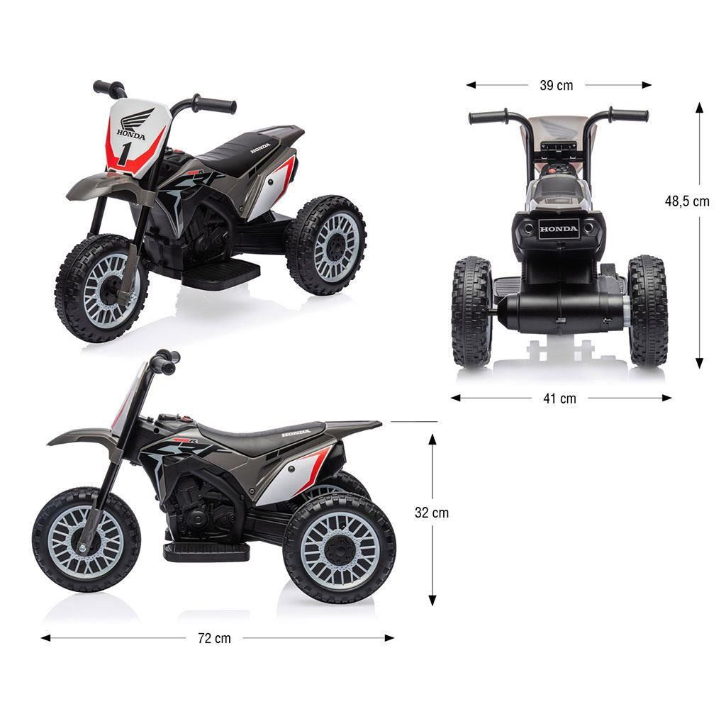 Po zapnutí se ozve zvuk motoru a po sešlápnutí plynového pedálu se motorka rozjede. Velká kola s terénním vzorkem zajišťují stabilitu při jízdě venku a tvarované sedadlo zajišťuje pohodlí a bezpečnost nejmenších uživatelů. Ocelové osy kol zaručují stabilitu a odolnost vozidla. Součástí je také klakson, díky kterému bude hraní ještě zábavnější.