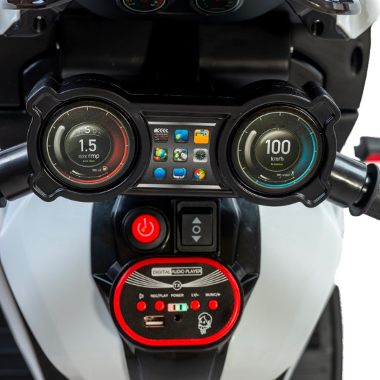 Dětská elektrická motorka Rare Baby Mix je vybavena baterií 6V7AH a dvěma motory s výkonem 380. Disponuje funkcí jednoduchého startu na jedno tlačítko, která umožňuje jízdu vpřed i vzad. Motorka je vybavena hudbou, písničkami pro děti, kartou pro čtení dat pro rané vzdělávání, třemi koly a LED světlomety. Komfort zajišťuje kožené sedadlo.