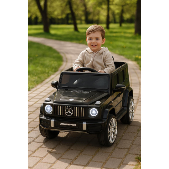 Autíčko vychází z oblíbeného modelu Mercedes-Benz G63 AMG a zaujme svým precizním zpracováním do nejmenšího detailu – od sportovního volantu přes přehlednou palubní desku až po stylová kola s logem Mercedes. Otevírací dveře a přední LED světla dodávají autíčku ještě autentičtější vzhled.