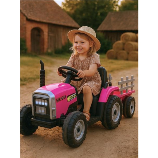 Elektrický traktor Baby Mix Erick s dálkovým ovladačem růžový
