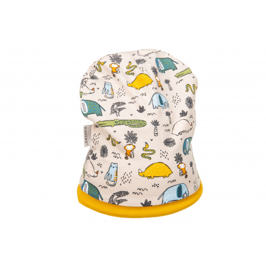 Emitex BAVLNĚNÁ ČEPICE S NÁKRČNÍKEM ZVÍŘATKA DVOUVRSTVÁ L hořčicová