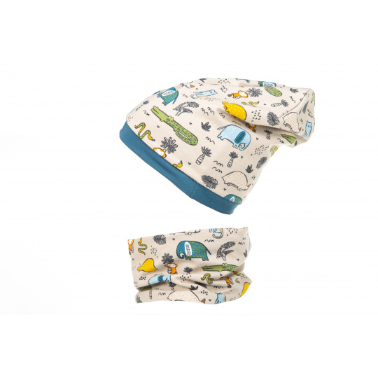 Emitex BAVLNĚNÁ ČEPICE S NÁKRČNÍKEM ZVÍŘATKA DVOUVRSTVÁ L