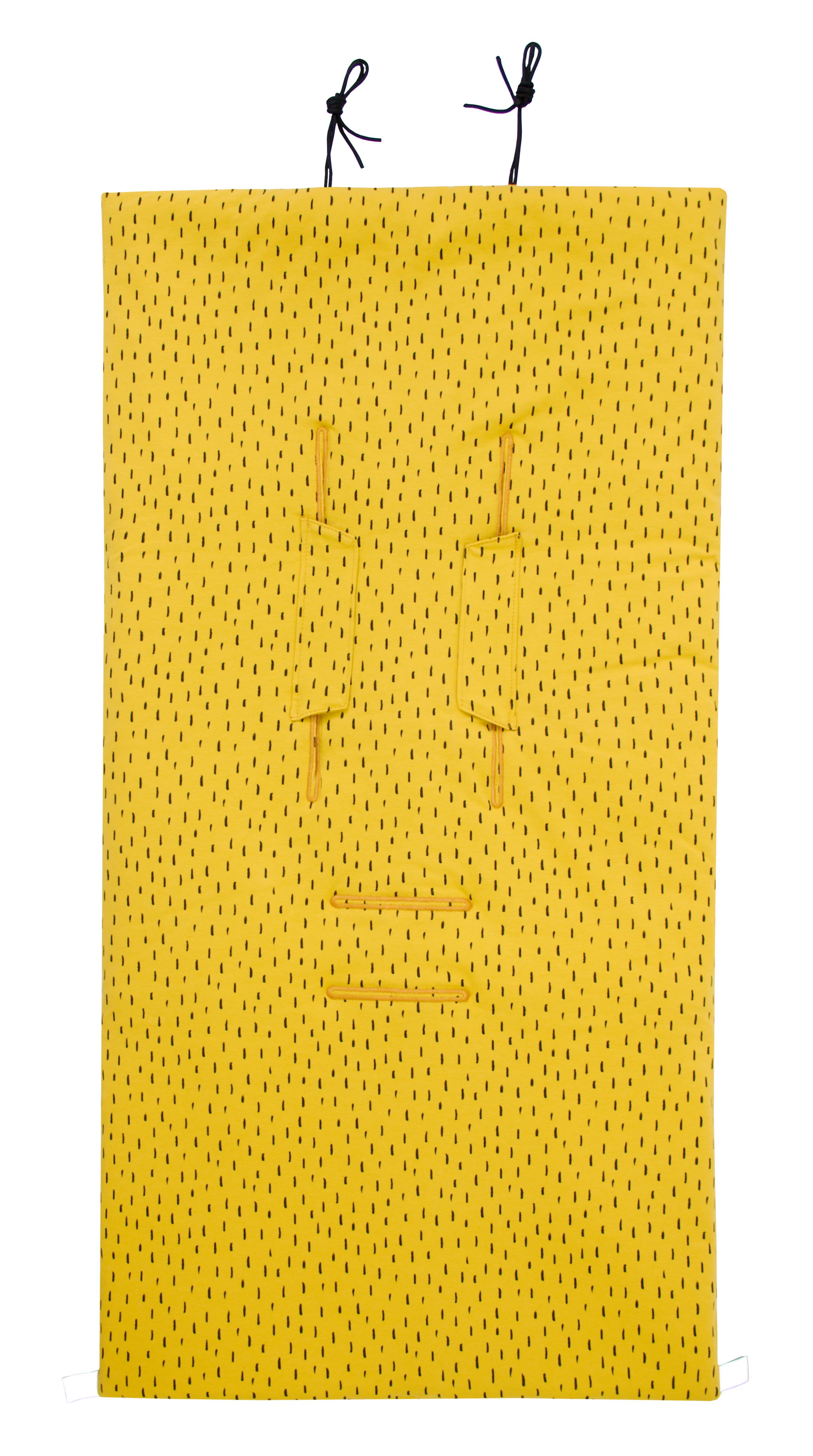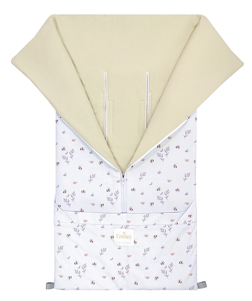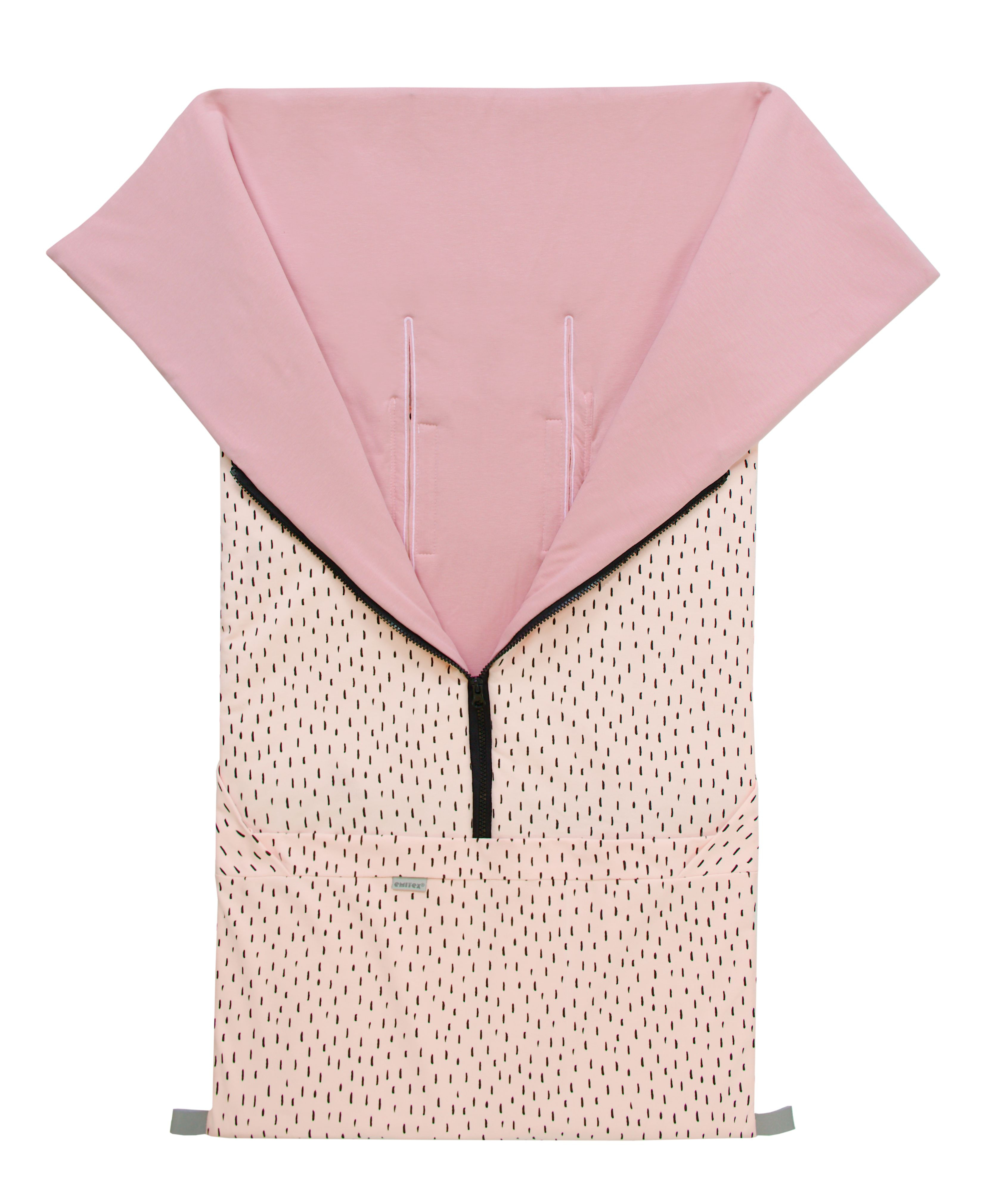 NOVINKOU je promyšlený praktický detail u prostupů pro bezpečnostní pásy kočárku nebo autosedačky. Pro ramenní a bederní pásy již nemusíte prostříhávat otvory nůžkami. Otvory jsou již z výroby prostupné, aby však pásy dobře držely, jsou překryty suchými zipy. Pásy tak stačí jednoduše otvory protáhnout a zapnout suchý zip. Jednoduché a funkční řešení!