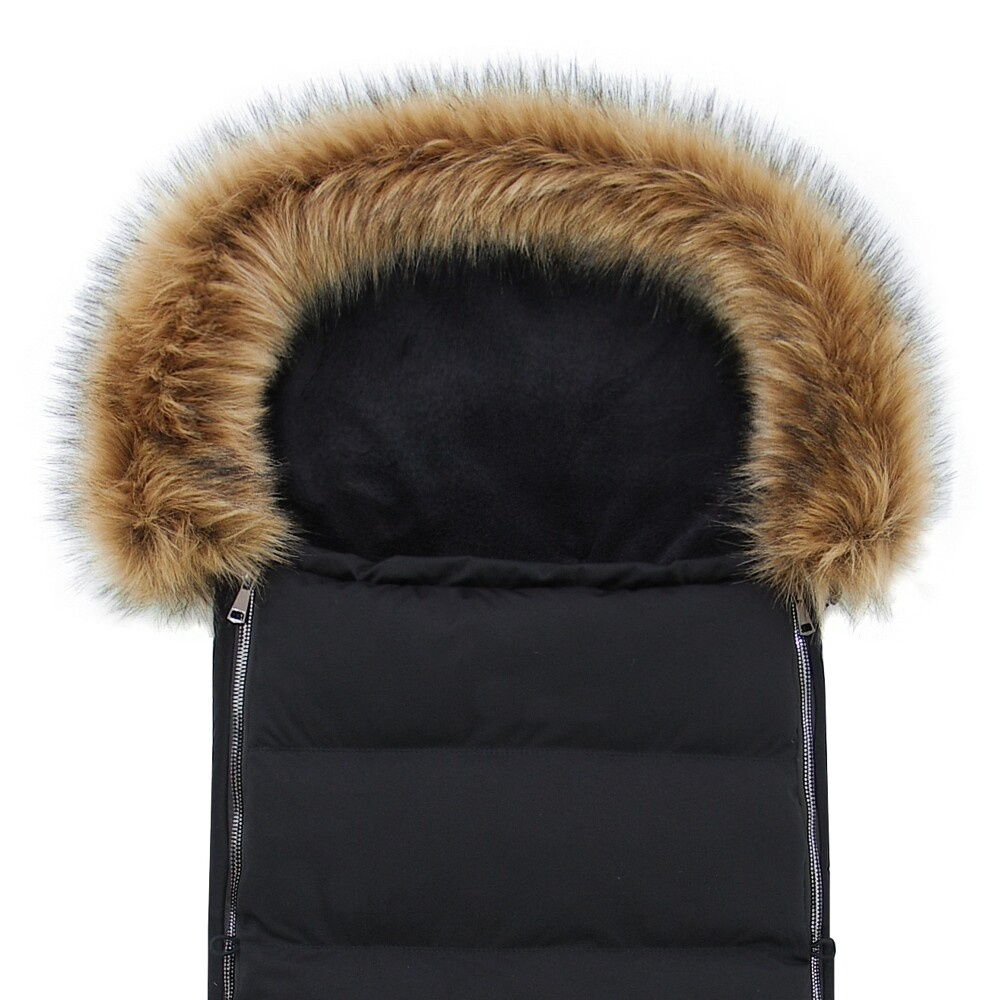 Fusak je ušit z funkčního voděodolného softshellu. Je ozdoben kvalitní nadýchanou kožešinou nově v té nejvyšší kvalitě, kterou je možné odepnout (k fusaku je připevněna pomocí druků).