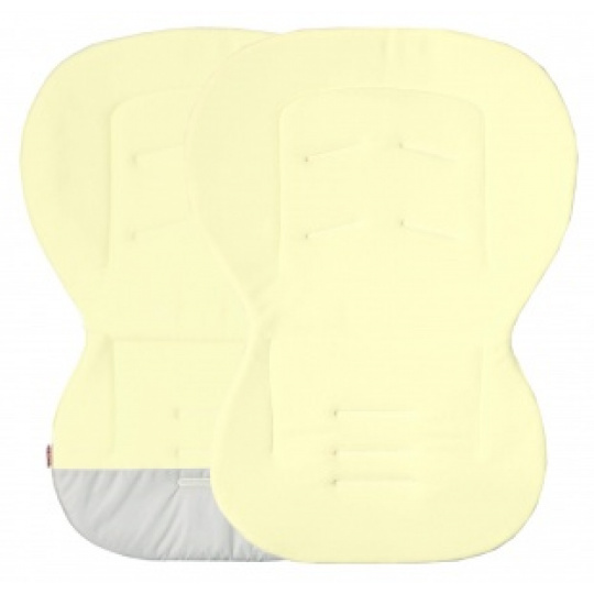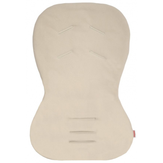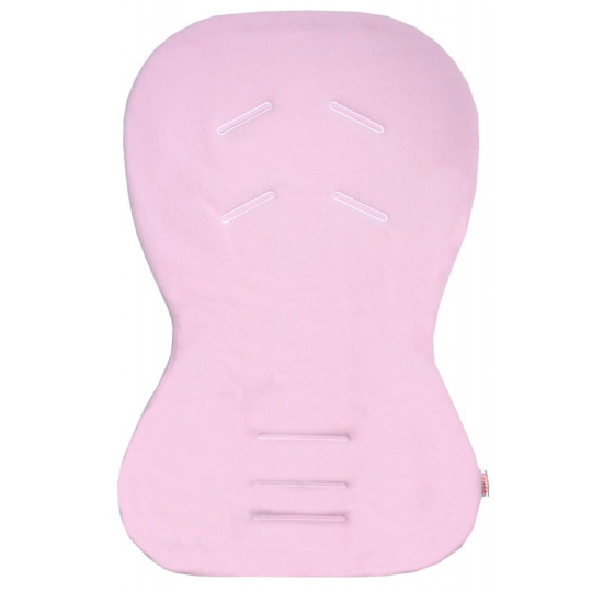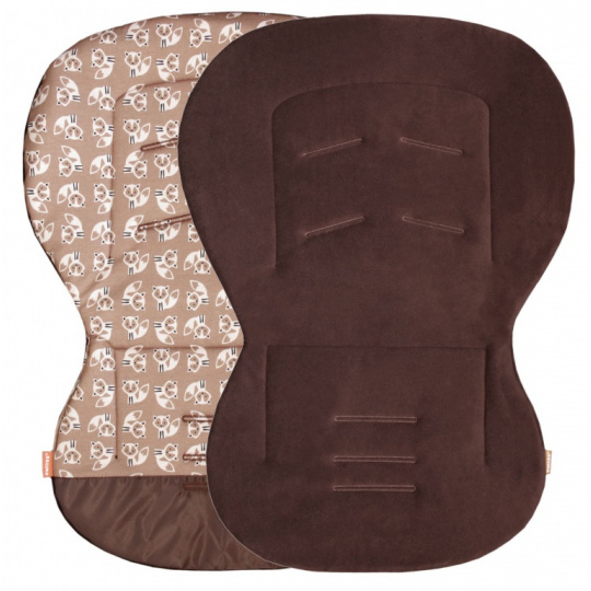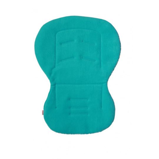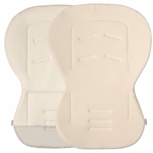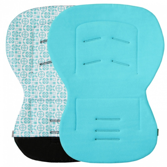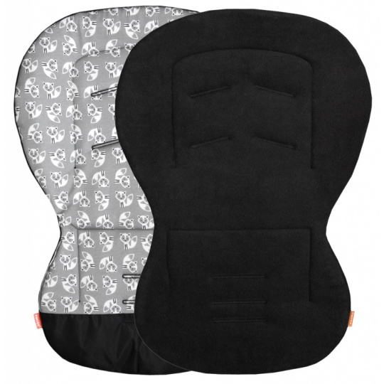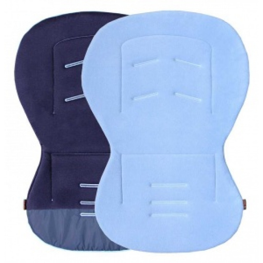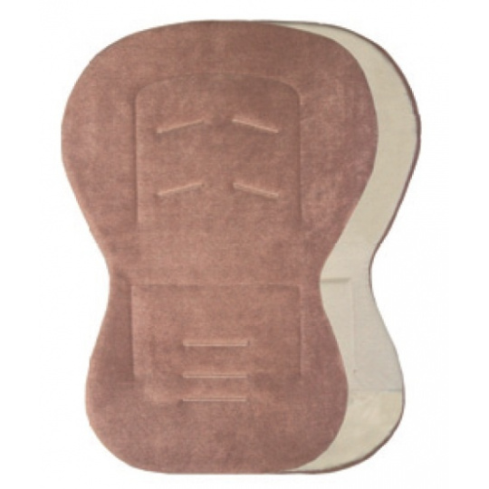 - hřejivý příjemný materiál, tato strana je vhodná na chladnější dny. Druhá strana je z bavlněného úpletu, který je příjemný také pro děti s citlivou pokožkou, tato strana je vhodná v teplých, letních dnech. Zejména v létě, kdy má dítě odhalenou pokožku je příjemnější dotýkat se této měkké vložky než originálního tuhého čalounění kočárku nebo autosedačky.