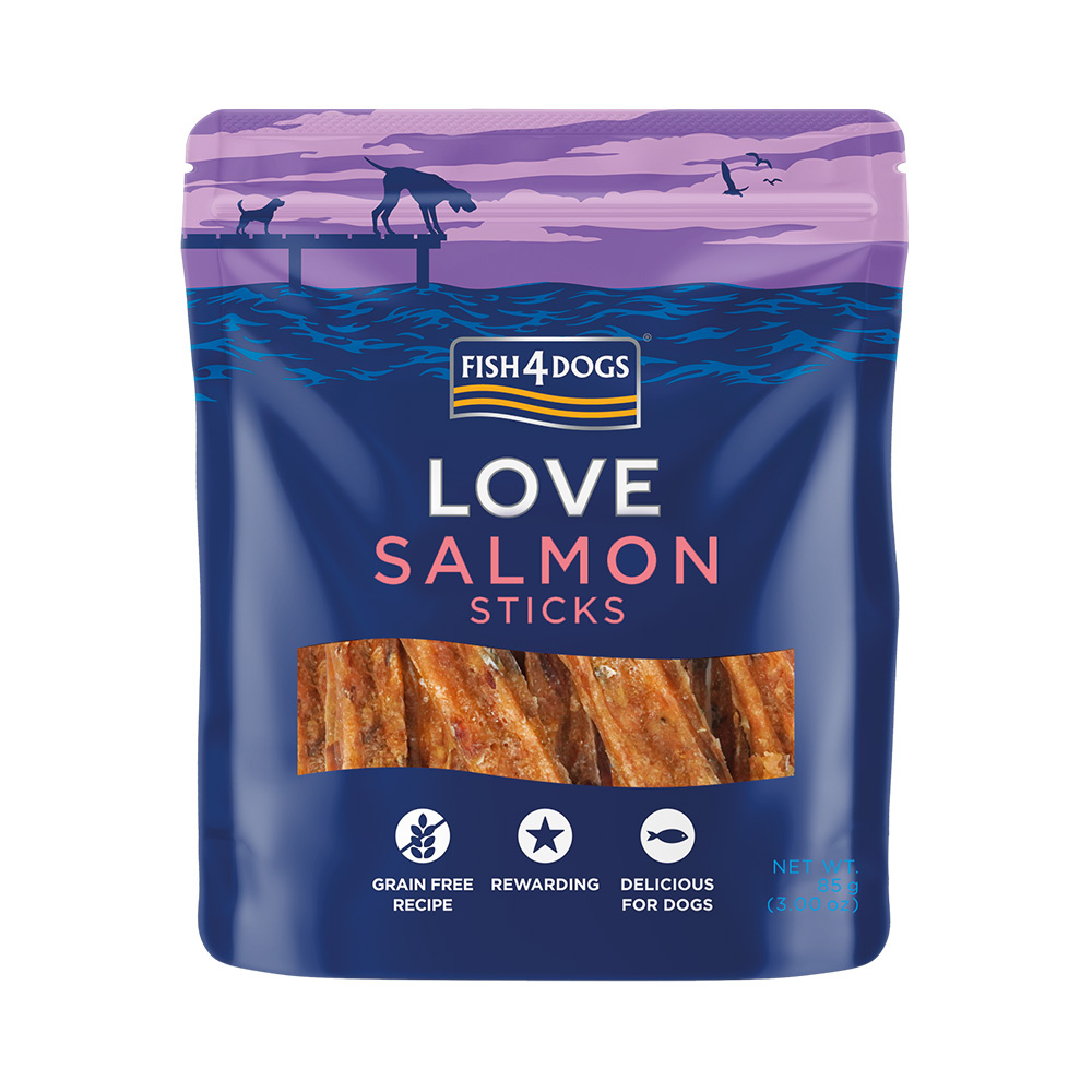 FISH4DOGS Pamlsky pro psy LOVE s lososem - tyčinky 85 g