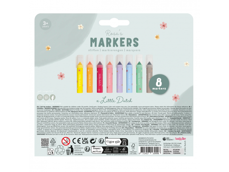 Nechte své dítě tvořit ty nejkrásnější obrázky s touto Little Dutch sadou 8 krátkých silnějších fixů v jemných odstínech. Jsou ideální pro malé dětské ruce, které teprve objevují radost z kreslení a vybarvování. Fixy podporují kreativitu, rozvíjejí jemnou motoriku a díky svým silnému provedení se snadno drží. Perfektní pro hodiny společného tvoření, hraní si s barvami a objevování fantazie. Skvěle ladí s ostatními výtvarnými doplňky Little Dutch. Vhodné pro děti od 3 let.