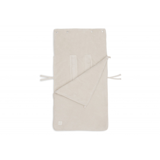 Stylový pletený fusak do autosedačky má vnější část z měkké pleteniny a vnitřní stranu z jemného fleecu pro maximální pohodlí a tepelný komfort dítěte v autosedačce. Otvory v zadní části fusaku umožňují protažení pásů autosedačky, fusak tak můžete mít v autosedačce připravený a po jeho rozepnutí již stačí jen dítě do autosedačky vložit a připoutat. Podle teploty v autě nebo venku fusak s pomocí zipů zapnete či naopak necháte rozepnutý, aby byl zajištěný tepelný komfort dítěte. Zapínání na patentky v horní části fusaku umožňuje vytvořit kapuci pro ochranu hlavičky dítěte např. při přenášení dítěte v autosedačce venku. Fusak je vhodný do autosedaček kategorie 0m+ (0-13 kg) s 3-bodovými nebo 5-bodovými pásy. Je možné jej používat i pro miminka od narození v kočárku. Vnější materiál: 60% bavlna, 40% akryl, vnitřní materiál: 100% polyester, výplň: 100% polyester. Rozměry: 42 x 82 cm