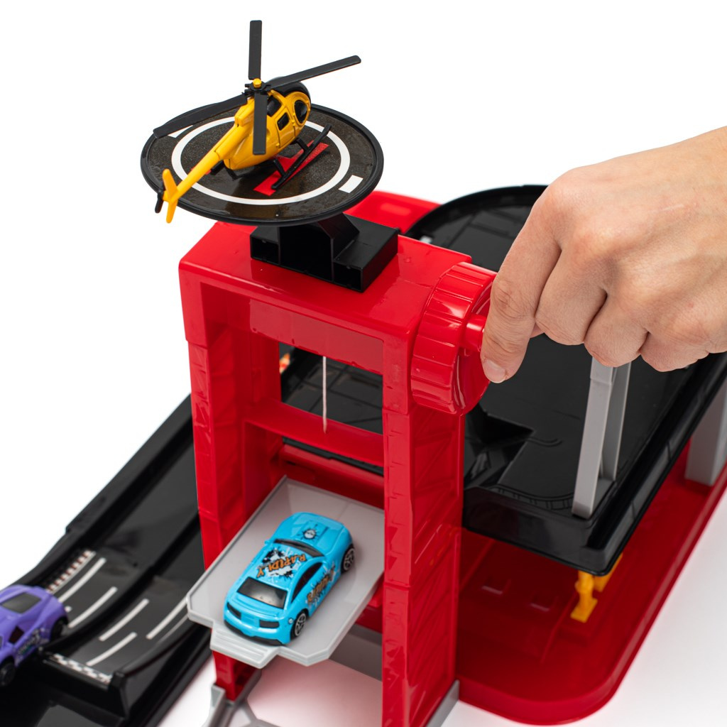 Dětské parkoviště Baby Mix s výtahem, čerpací stanicí a helikoptérou je zaručenou zábavou pro děti na dlouhé hodiny. Rozměry parkoviště jsou 60 x 33 x 29 cm, takže je prakoviště ideální pro hru na podlaze nebo stole. Celá sada dětského parkoviště je navržena tak, aby podněcovala dětskou představivost, podporovala rozvoj jemné motoriky a zároveň poskytla bezpečné prostředí pro hru.