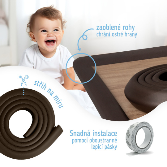 Pěnová ochranná páska Sipo na ostré hrany a rohy, které by mohly způsobit zranění. Vysoce kvalitní pěnový materiál umožňuje dostatečnou ochranu dítěte před zranění v případě nárazu. Ochrana ostrých hran a rohů je velmi užitečná bezpečnostní pomůcka zejména pro malé děti, které se učí chodit a běhat. Děti často omylem narazí do nábytku, což může mít za následek bolestivé modřiny nebo zranění. Ochranné pásky na hrany nábytku takovýmto zraněním zabraňují tím, že tlumí nárazy.