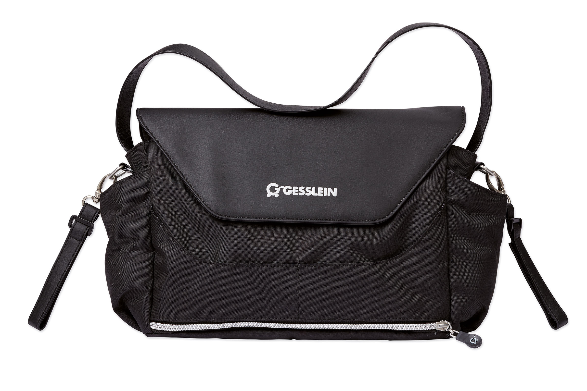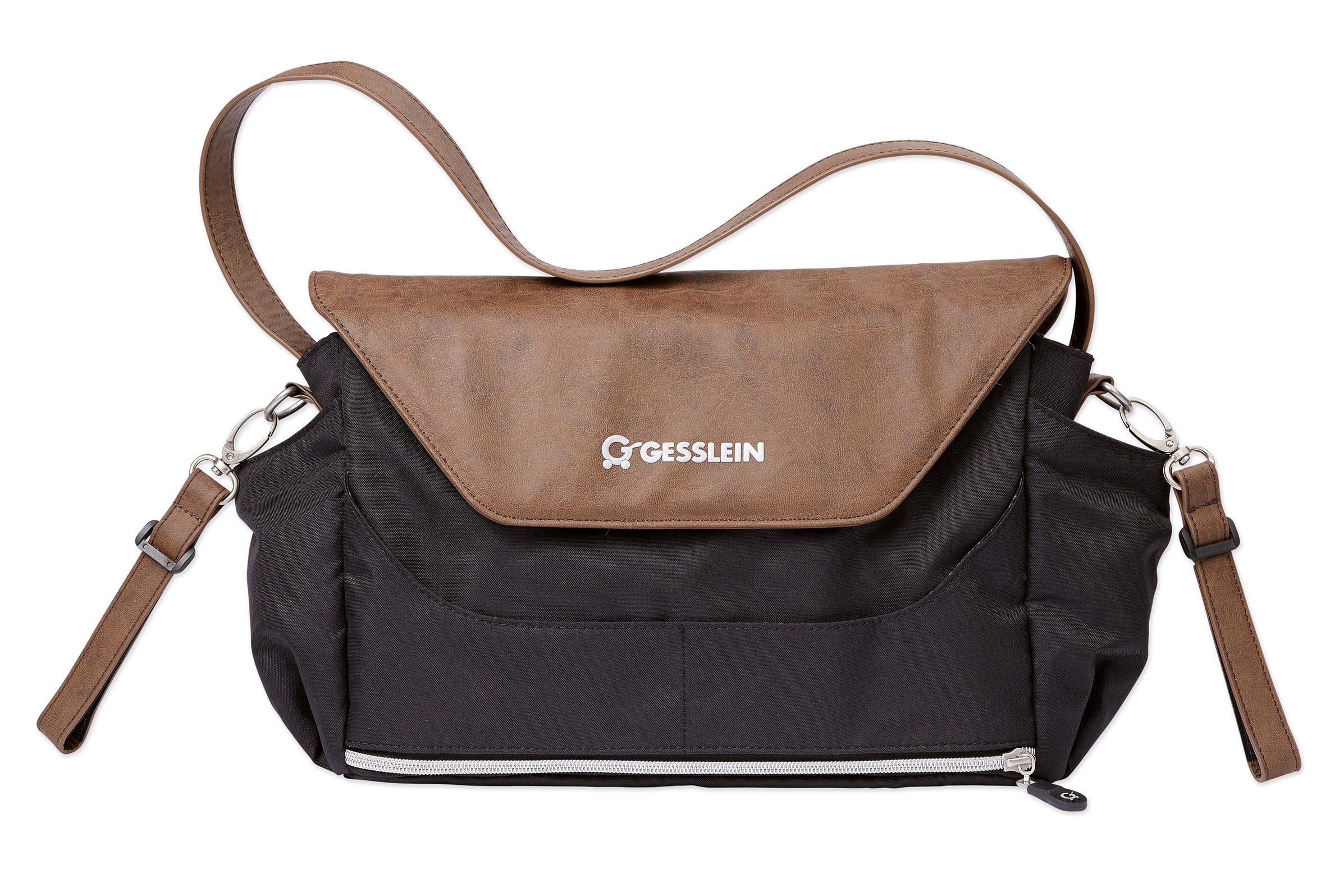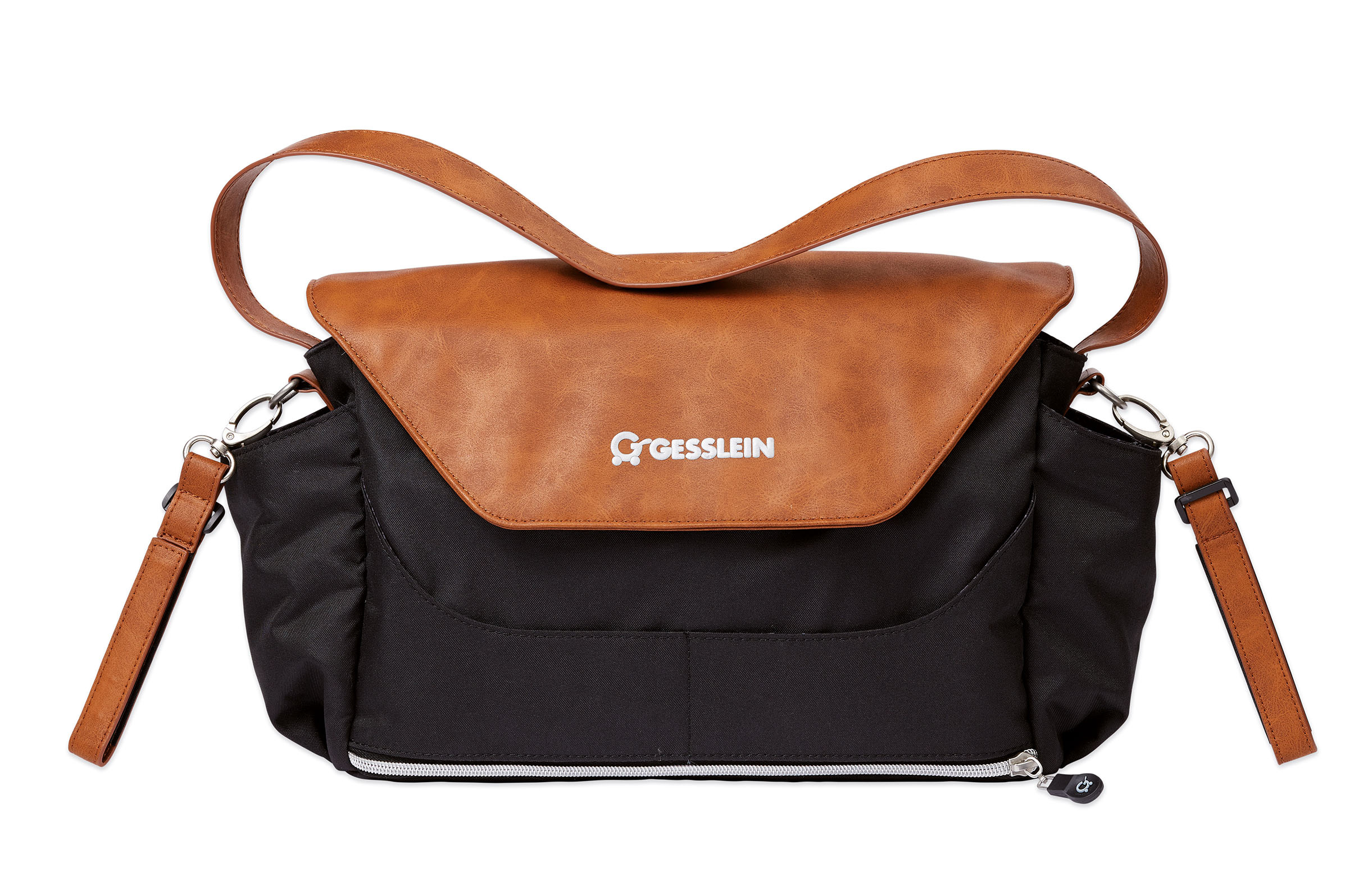 Postraním pásky pro připevnění na rukojeť kočárku, stejně tak jako praktický popruh přes rameno.