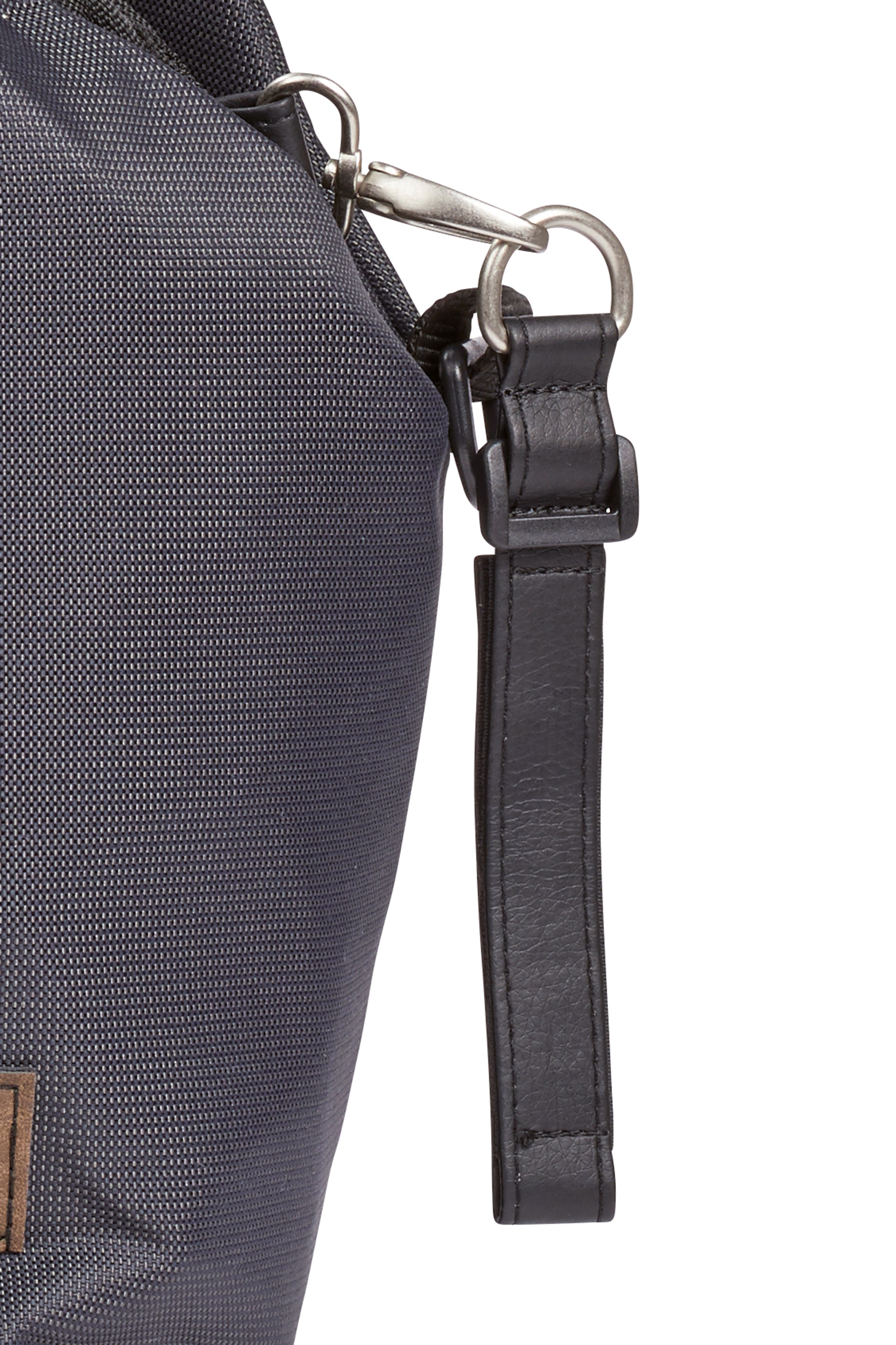 Pokud cestujete s kočárkem, můžete snadno zavěsit plenkový vak N ° 5 na tlačnou rukojeť. Upevňovací poutka pro tento pobyt zůstanou trvale na posuvníku, taška se jednoduše připne pomocí karabiny - není nutné žádné komplikované připoutání!