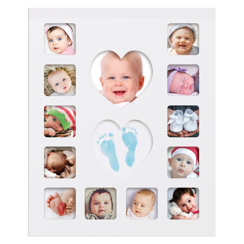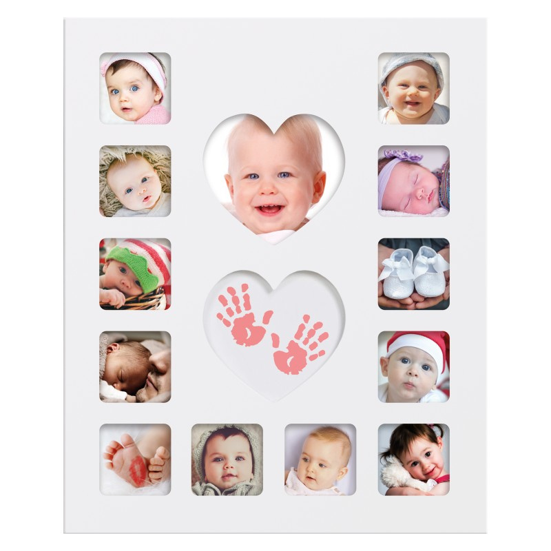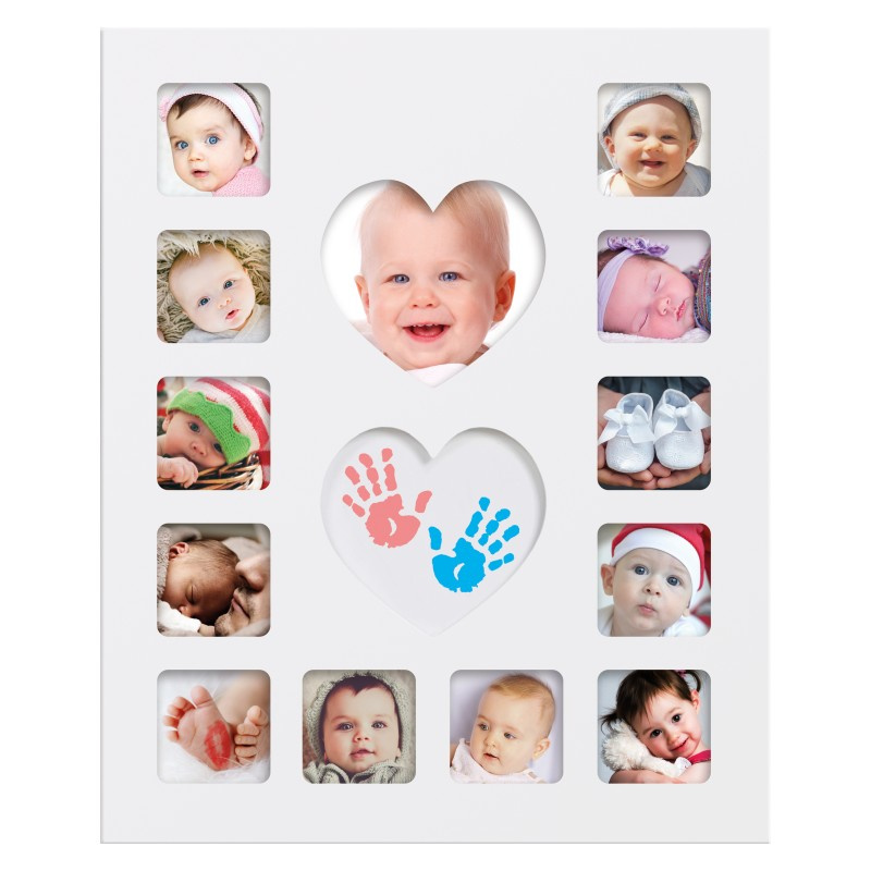- do rámečku si můžete vložit fotky prvních 12-ti měsíců Vašeho miminka (rozměr 5cm x 5cm) + otisknout jeho ručičky / nožičky