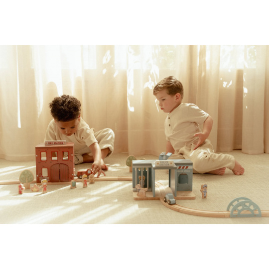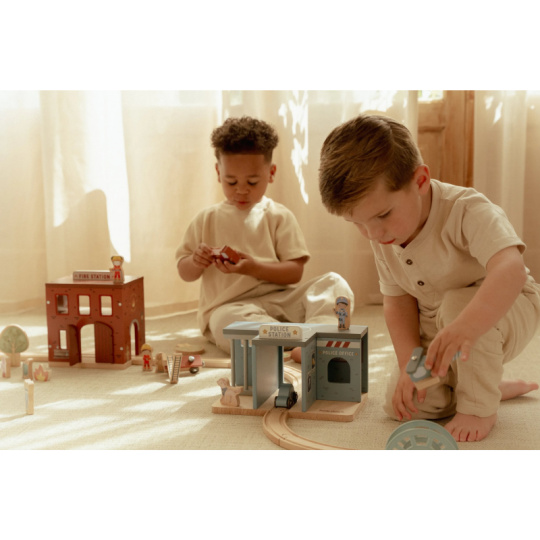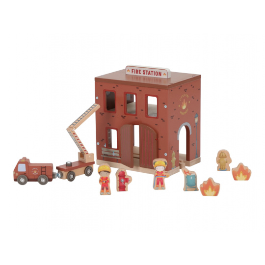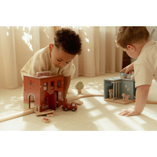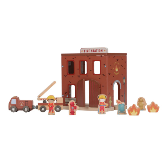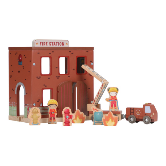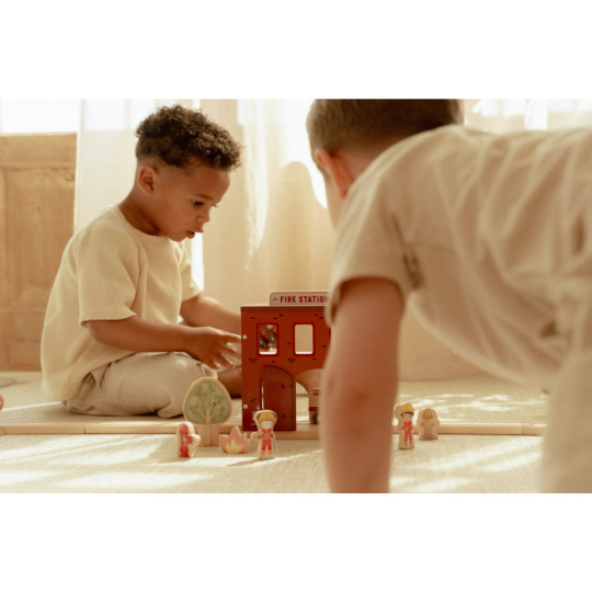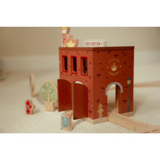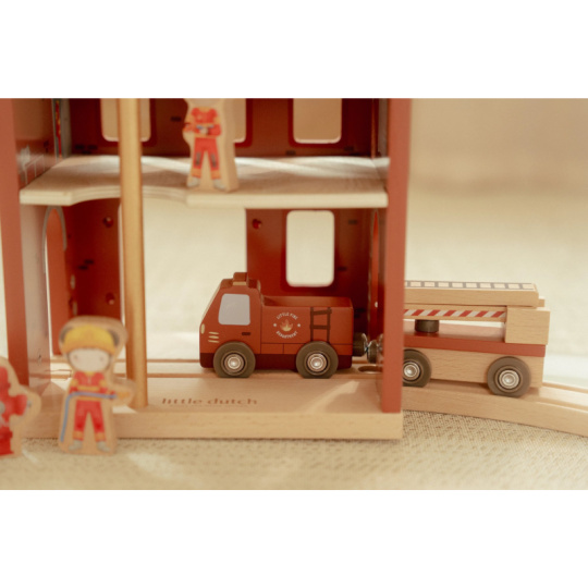 Poplach! Siréna houká a hasiči vyráží do akce! Tato dřevěná hasičská stanice nabízí vše potřebné pro napínavé záchranné mise. Otevři dveře, sjeď po tyči dolů a naskoč do hasičského vozu – někde hoří a je potřeba pomoci! Součástí sady jsou figurky hasičů, oheň a hořící popelnice pro realistické hraní. Dveře stanice lze otevřít, aby mohl zásah začít co nejrychleji. Hasičská stanice je kompatibilní s dřevěnou vláčkodráhou Little Dutch, což umožňuje ještě více zábavy a kombinací. Hračka je součástí kolekce vysoce kvalitních dřevěných hraček Little Dutch, navržených s důrazem na bezpečnost a originální design. Vyrobeno z odolného FSC certifikovaného dřeva. Rozměry: 19 x 18,2 x 13,5 cm Vhodné pro děti od 2 let.