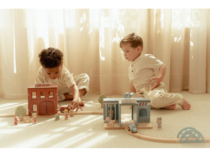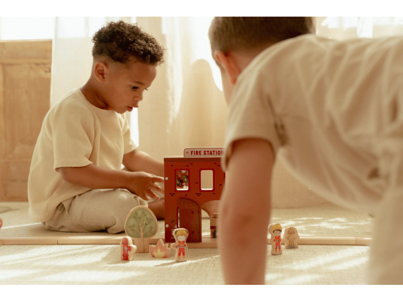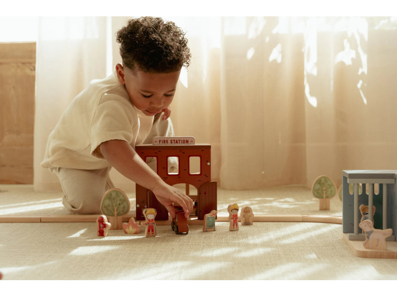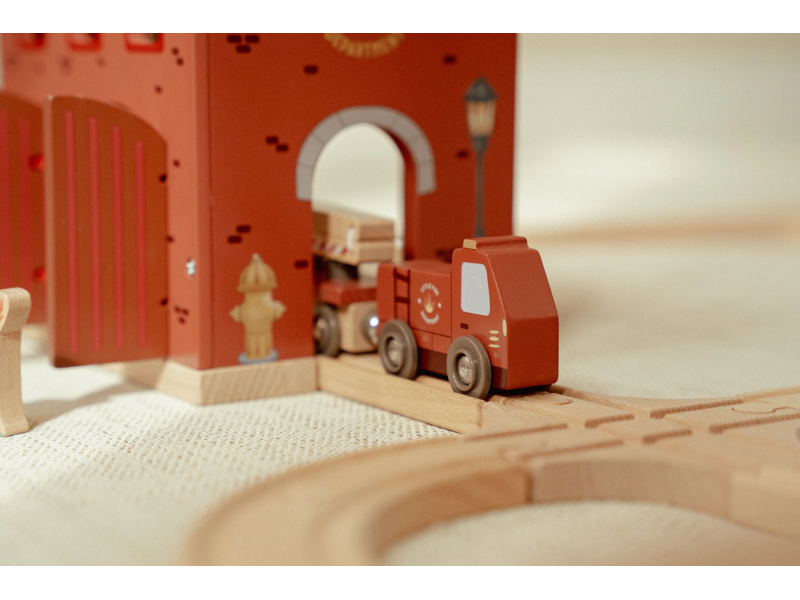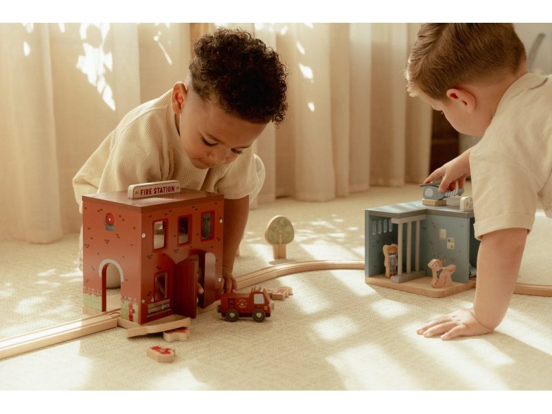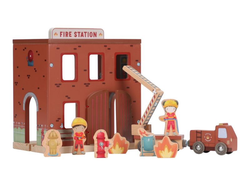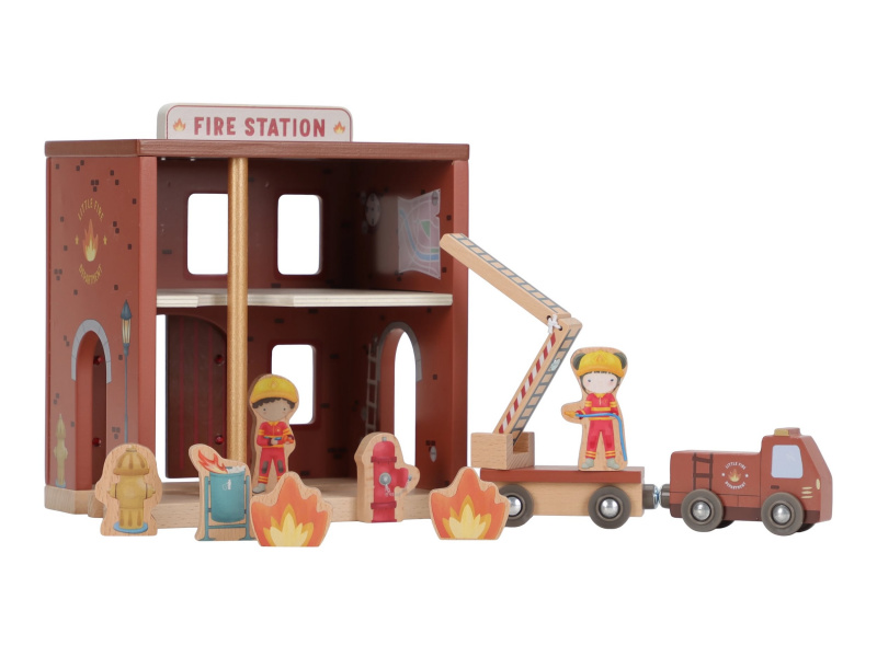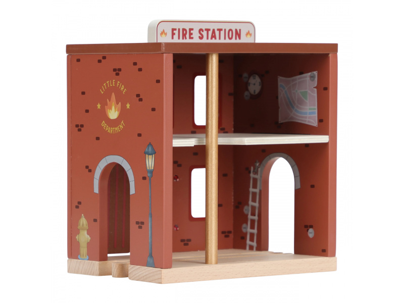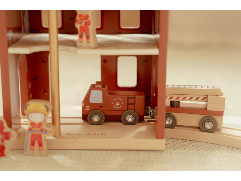 Poplach! Siréna houká a hasiči vyráží do akce! Tato dřevěná hasičská stanice nabízí vše potřebné pro napínavé záchranné mise. Otevři dveře, sjeď po tyči dolů a naskoč do hasičského vozu – někde hoří a je potřeba pomoci! Součástí sady jsou figurky hasičů, oheň a hořící popelnice pro realistické hraní. Dveře stanice lze otevřít, aby mohl zásah začít co nejrychleji. Hasičská stanice je kompatibilní s dřevěnou vláčkodráhou Little Dutch, což umožňuje ještě více zábavy a kombinací. Hračka je součástí kolekce vysoce kvalitních dřevěných hraček Little Dutch, navržených s důrazem na bezpečnost a originální design. Vyrobeno z odolného FSC certifikovaného dřeva. Rozměry: 19 x 18,2 x 13,5 cm Vhodné pro děti od 2 let.