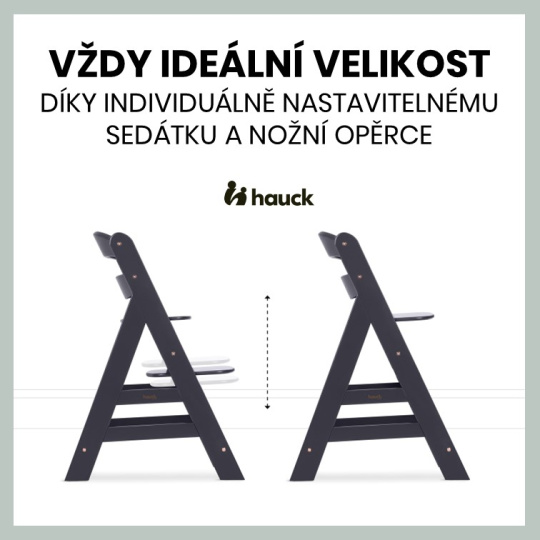 Hauck Alpha+ dřevěná židle+novorozenecký set polohovací, 0m+, Dark Grey