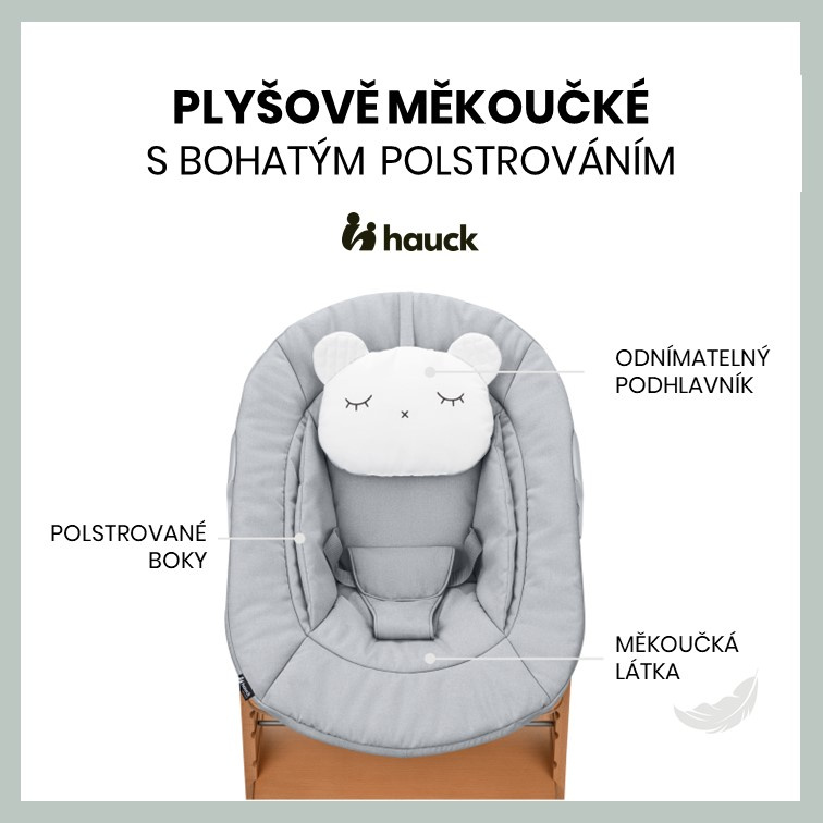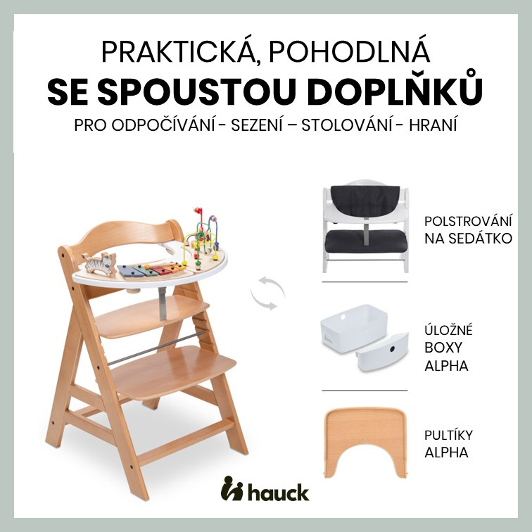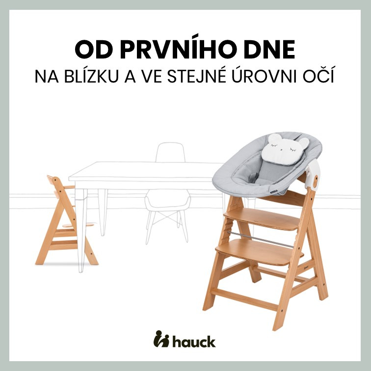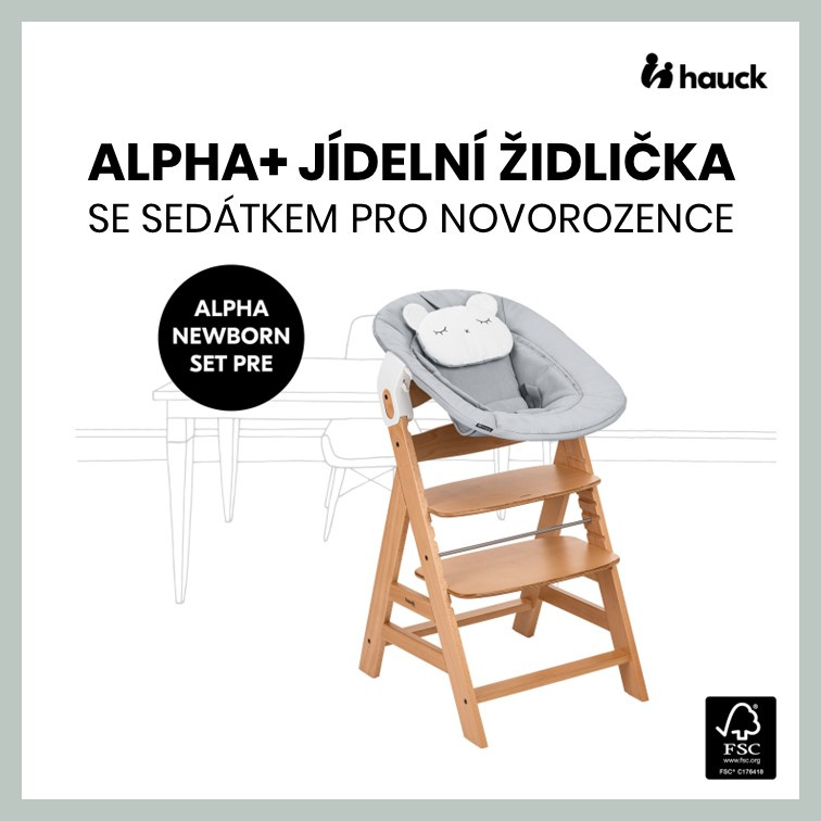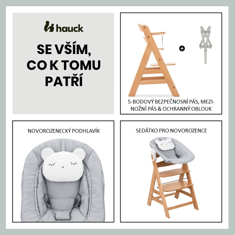 Hauck Alpha+ dřevěná židle+novorozenecký set Pre, 0m+, Nature Grey