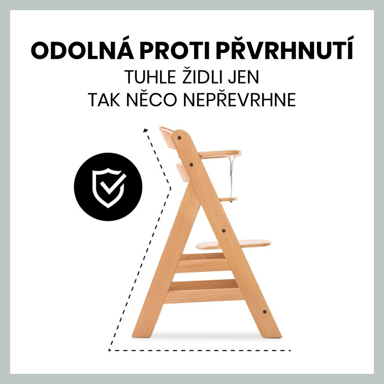 TUHLE ŽIDLI NENÍ SNADNÉ PŘEVRHNOUT // Děti jsou stále v pohybu! Proto jsme vyrobili jídelní židličku Alpha+, která je mimořádně odolná proti převrhnutí. I když se vaše dítě od stolu odstrčí, kluzáky zajistí, že židle zůstane stát.