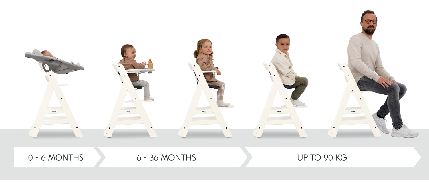 ERGONIMICKÁ, ROSTOUCÍ VYSOKÁ ŽIDLE NA CELÝ ŽIVOT // Díky nastavitelnému sedátku a nožní opěrce se jídelní židlička Beta+ lehce přizpůsobí vašemu rostoucímu děťátku. Díky své vysoké nosnosti až 90 kg je jídelní židlička spolehlivým společníkem na celý život.