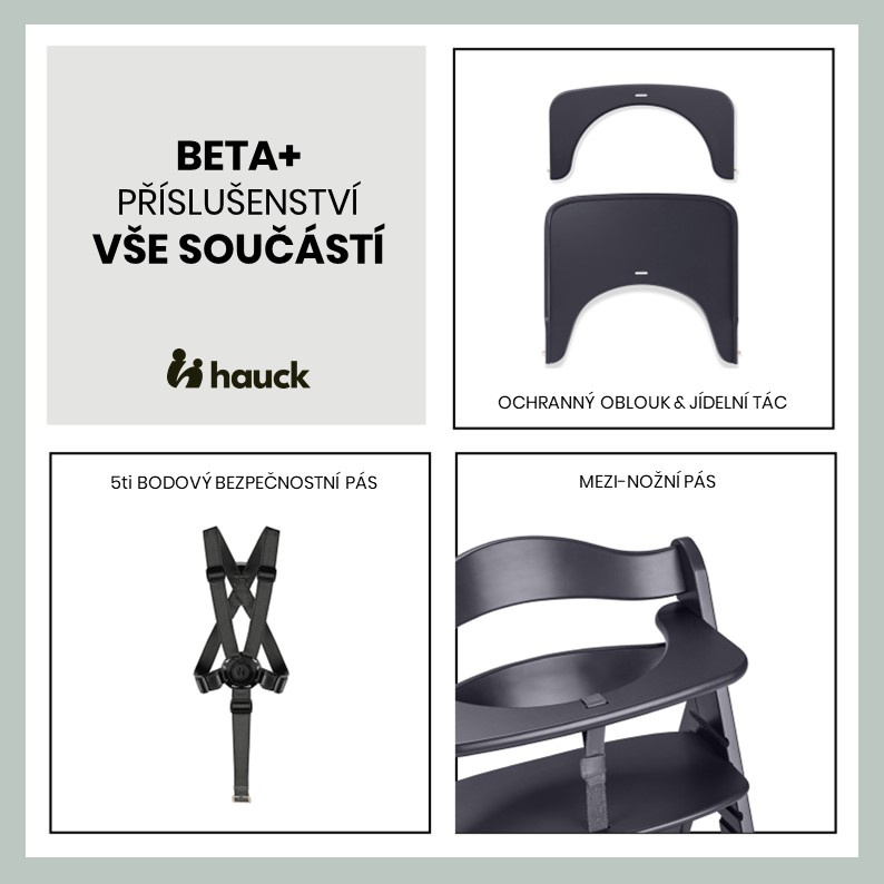DOSTUPNÉ DOPLŇKY // K jídelní židličce Beta+ je možné přikoupit řadu doplňků : pohodlné polstrování, plastový pult, úložný box nebo praktickou silikonovou podložku.
