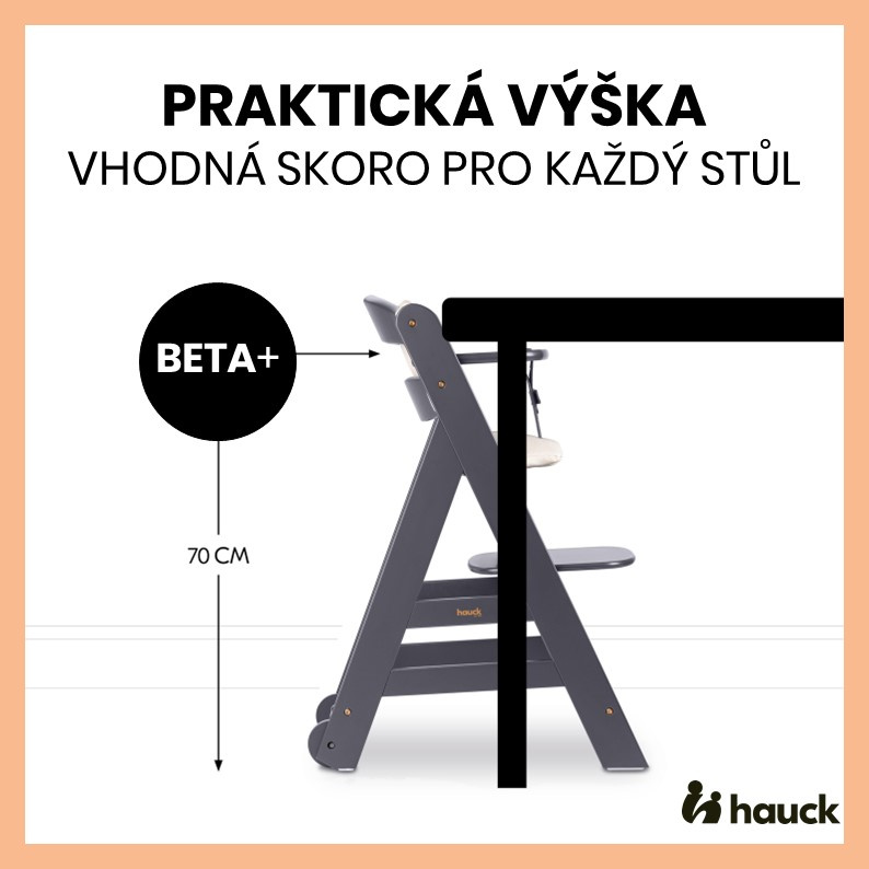 PRAKTICKÁ VÝŠKA VHODNÁ PRO SKORO KAŽDÝ STŮL // Jídelní židlička Beta+ je vhodná jak k jídelnímu tak pracovnímu stolu, podle potřeby a věku dítěte.