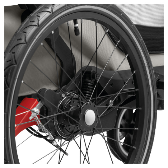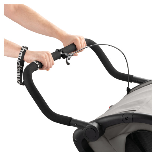 VŠE POD KONTROLOU // Do kopce, z kopce a zase do kopce? Ve sportovním a kočárkovém režimu budete mít vždy vaše rychlost pod kontrolou pomocí ruční brzdy, bezpečnostnímu pásku na ruku a nožní brzdě – kdekoli a kdykoli, vždy můžete rychle reagovat a vést svůj cyklovozík bezpečně za dalším dobrodružstvím!