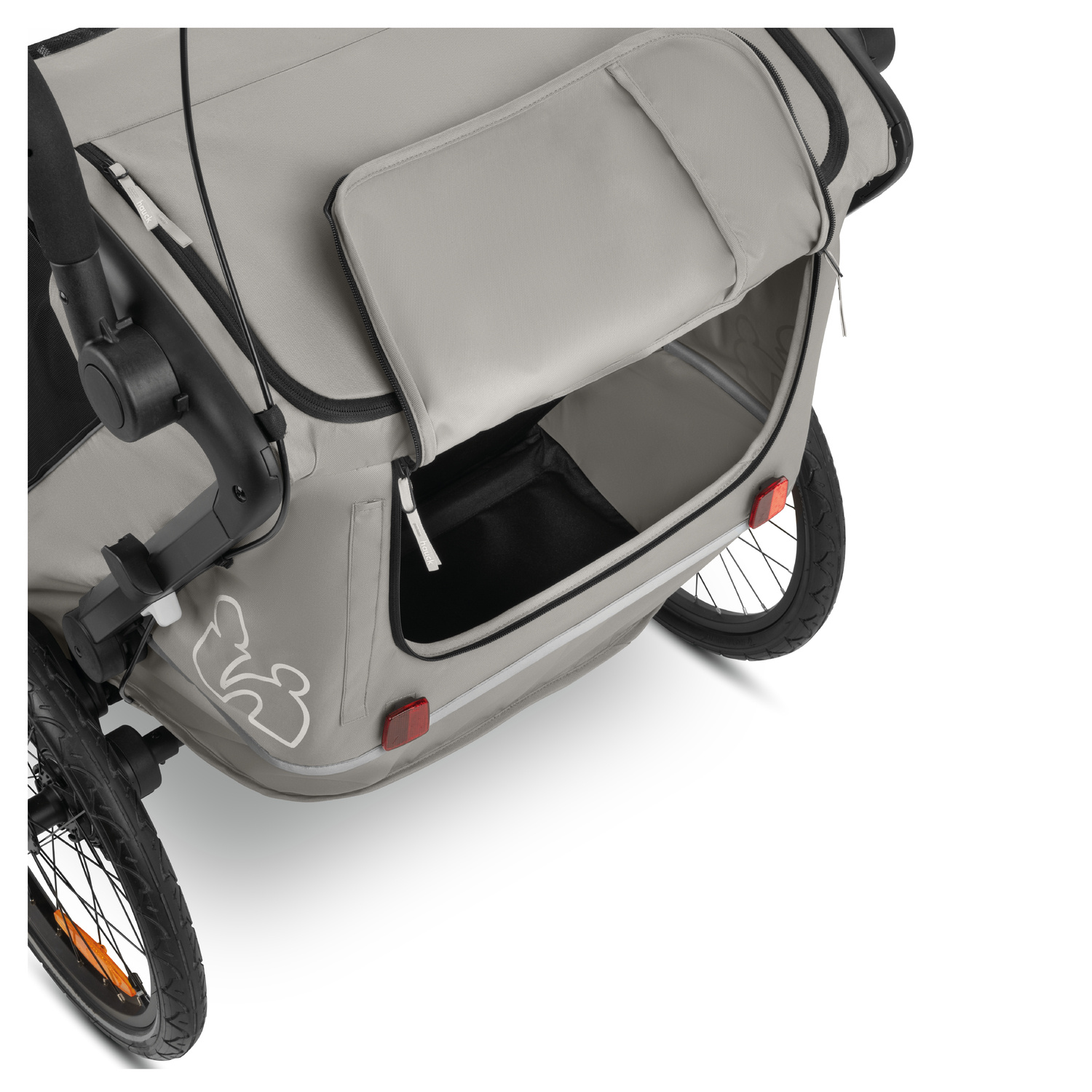 Přizpůsobte cyklovozík svému stylu - Na procházky, jízdu na kole nebo na sport – multifunkční cyklovozík BIKE N WALK DUO je připraven na jakýkoli způsob jízdy. Součástí balení je tažná tyč, ochrana kol, praporek, kolo na procházky i sportovní kolo a pumpička – vše v jedné krabici k dispozici pro váš aktivní životní styl. Cyklovozík snadno přestavíte v několika krocích a stejně snadno jej složíte pro uskladnění.