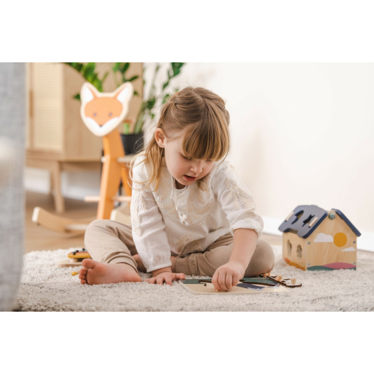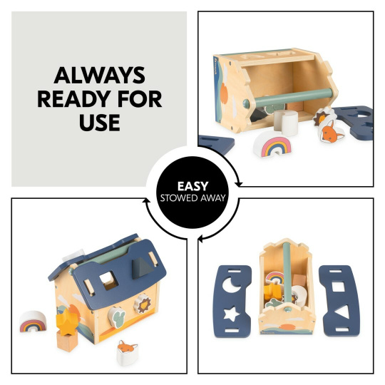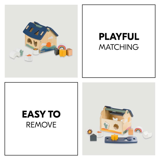 - dřevěný domeček s vkládacími tvary podpoří jemnou motoriku vašeho dítěte a zabaví ho na dlouhé chvíle