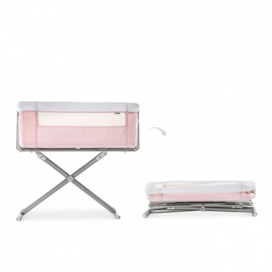 Dětská postýlka lze snadno vyjmout z rámu a složit. Základový rám lze díky praktickému skládacímu mechanismu také jednoduše sklopit a tím ušetřit místo.