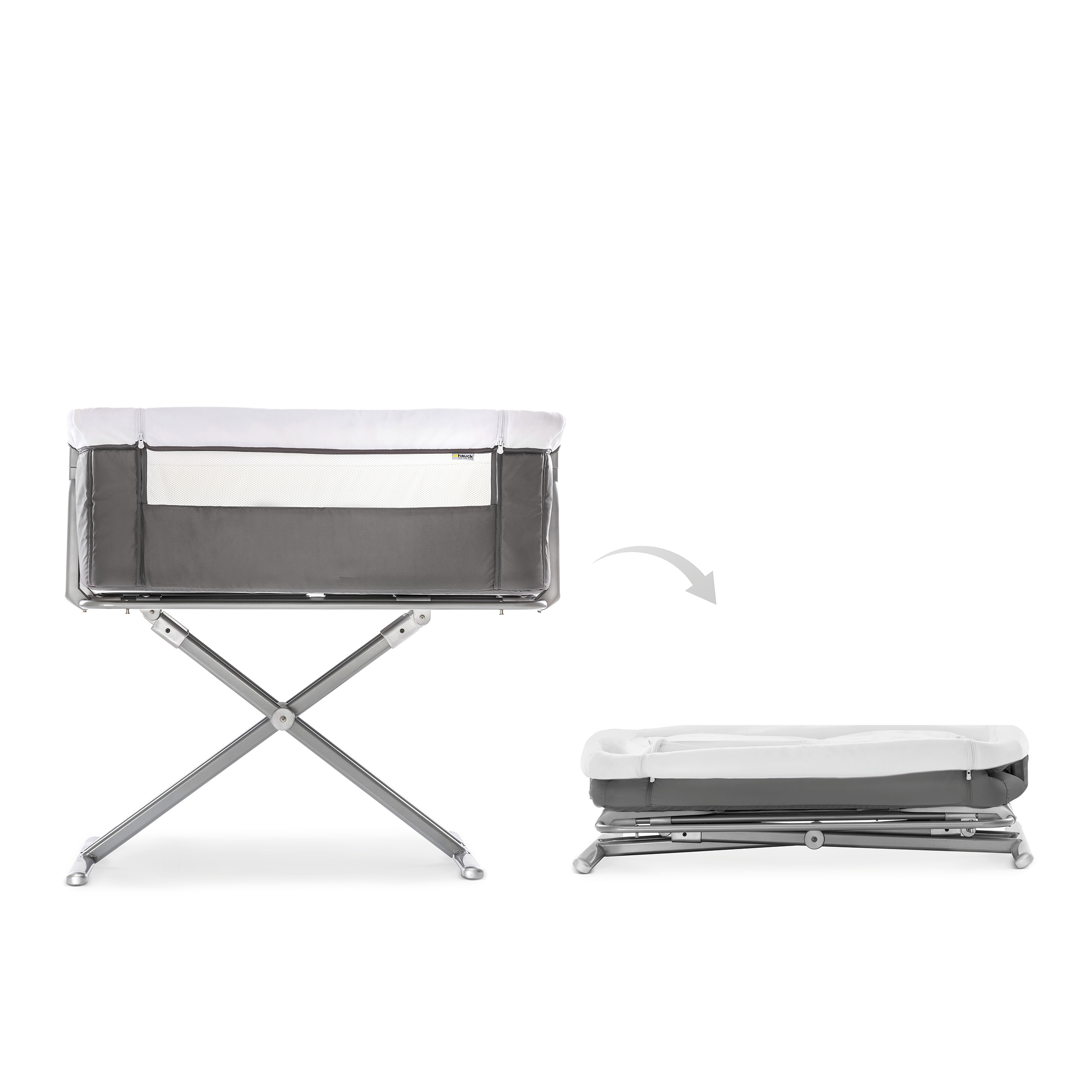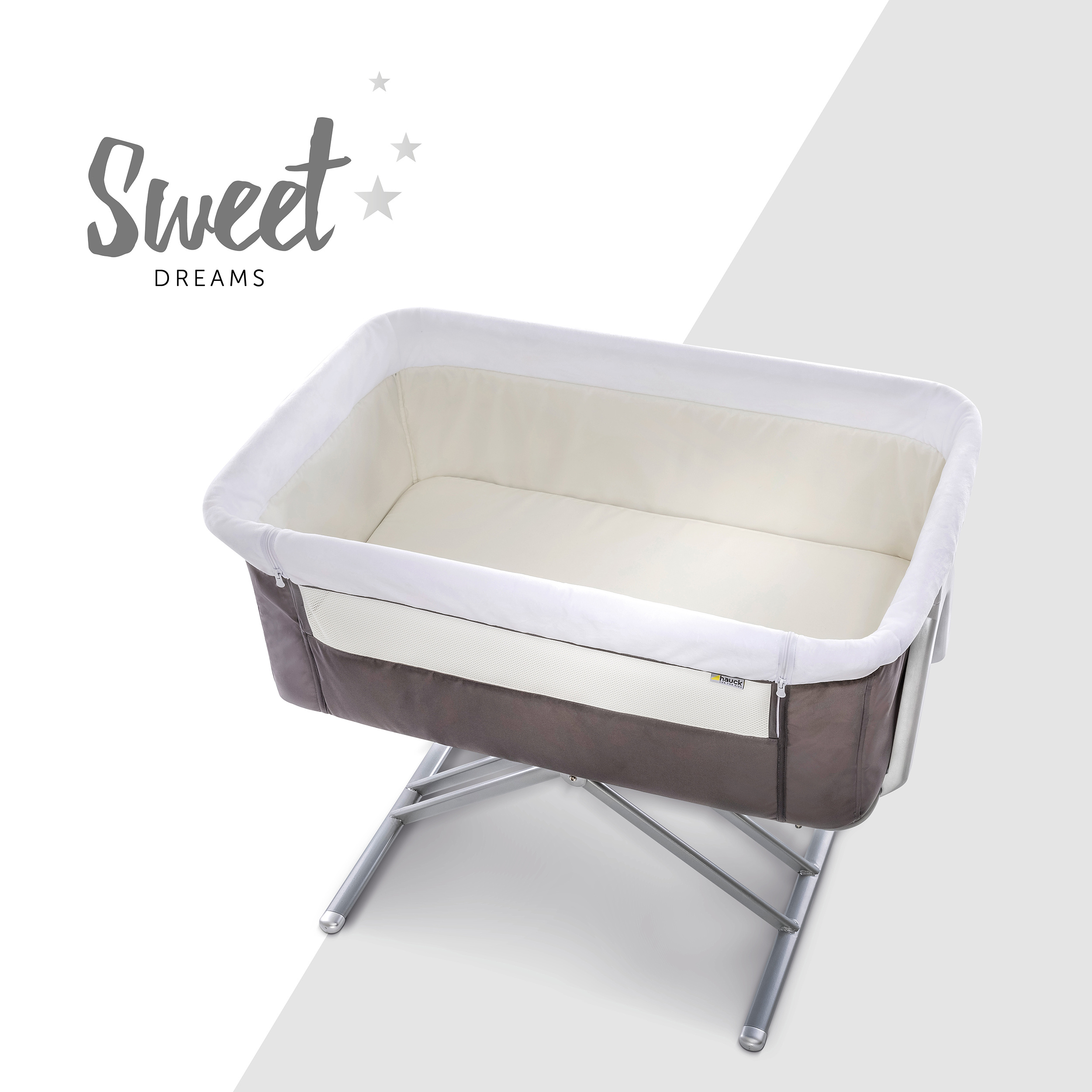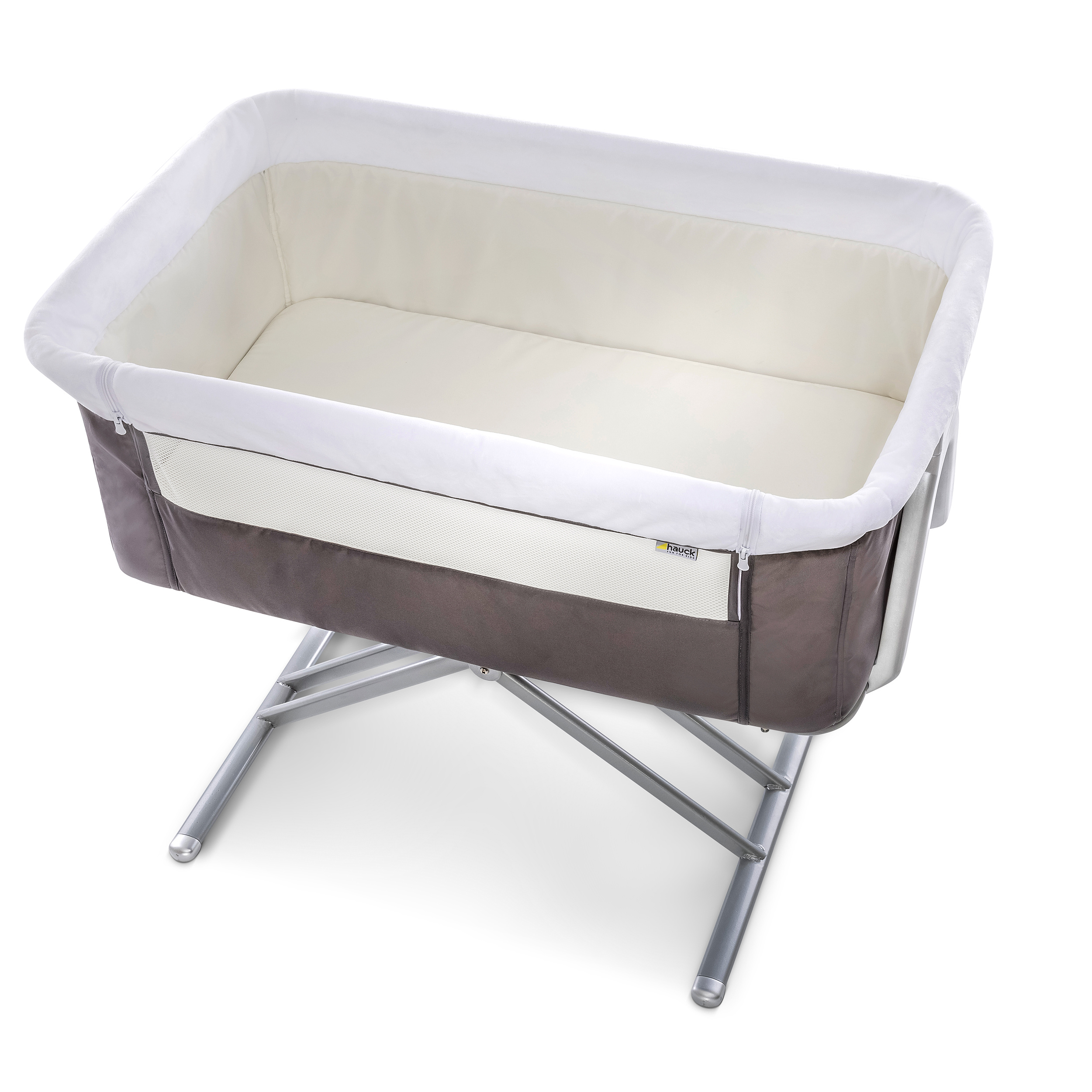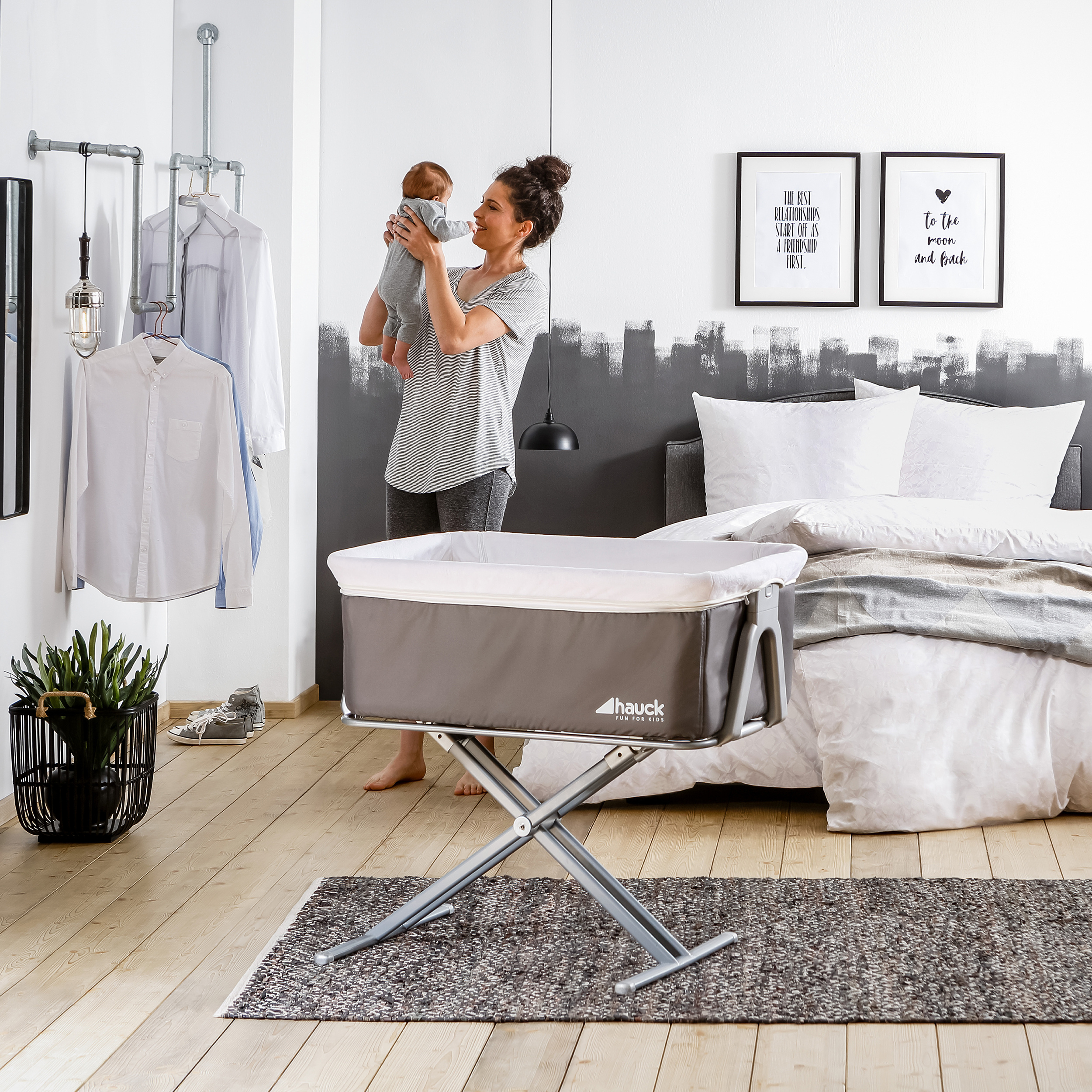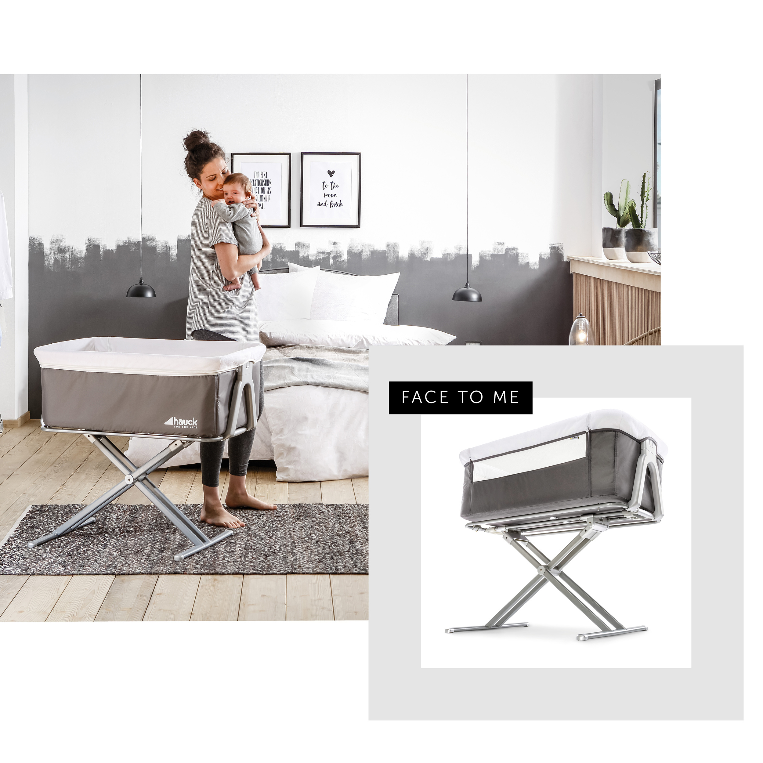Hauck Face To Me je krásná postýlka v moderním designu použitelná buď samostatně v prostoru, nebo lze připnout k rodičovské posteli.