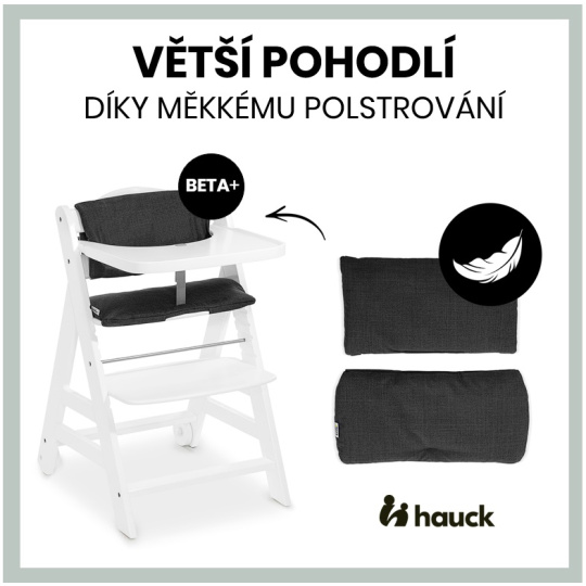 DOSTUPNÉ DOPLŇKY // K jídelní židličce Beta+ je možné přikoupit řadu doplňků : pohodlné polstrování, plastový pult, úložný box nebo praktickou silikonovou podložku.