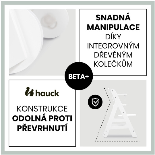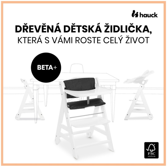 Jídelní židlička Beta+ je vyrobena z evropského bukového dřeva pocházejícího z lesů s certifikátem FSC®, který oceňuje trvale udržitelné a ekologické lesní hospodaření na ochranu rostlin a zvířat. Díky stabilní konstrukci s integrovanými kolečky a podlahovými kluzáky je Beta+ mimořádně odolná proti překlopení.