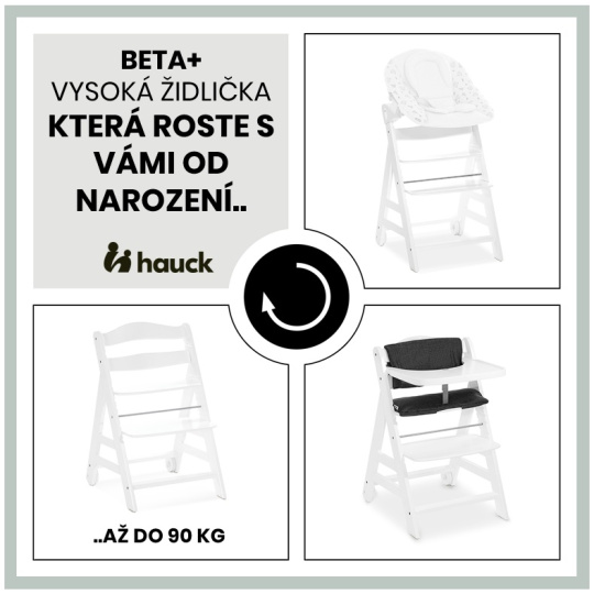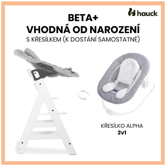 VHODNÁ JIŽ OD NAROZENÍ PŘI POUŽITÍ KŘESÍLKA (DOSTUPNÉ SAMOSTATNĚ) // V kombinaci s křesílkem 2v1 můžete jídelní židličku Beta+ používat již od narození. Křesílko je možné použít jako nástavec na židličku nebo při použití rámu jako samostatné křesílko.