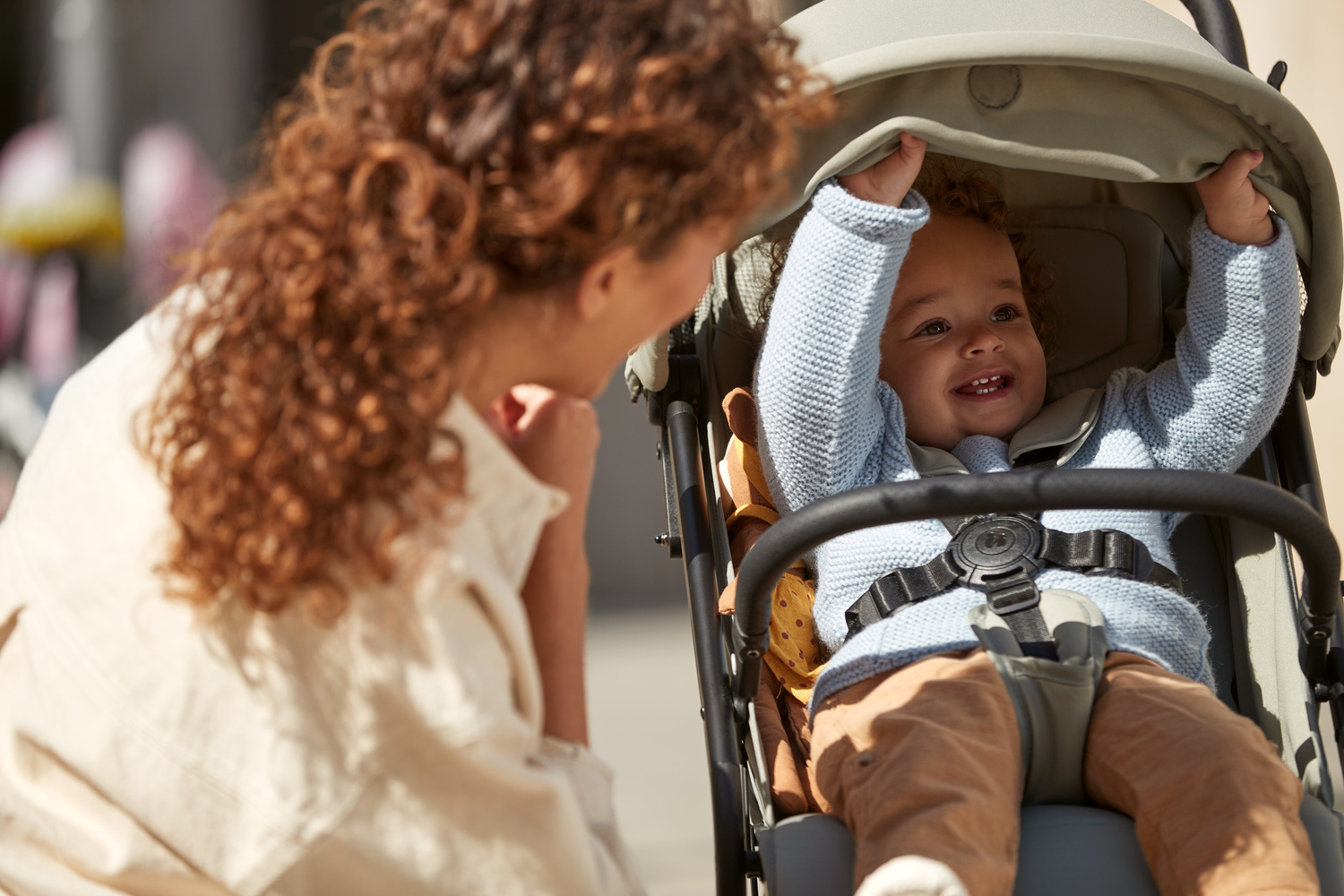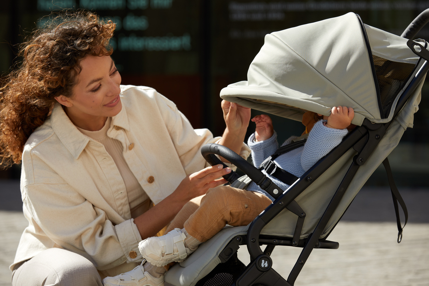 Díky odpružení tlumícímu nárazy a kolečkům pro hladkou jízdu odolným proti propíchnutí si vaše dítě užije pohodlnou jízdu. Rychlé manévrování nákupním centrem je díky otočným kolečkům hračkou. Když chce vaše dítě spát, můžete jednoduše sklopit opěrku zad jednou rukou. Sluneční stříška s UV ochranou 50+ nabízí příjemný stín, zatímco síťovaná okénka poskytují dostatečnou cirkulaci vzduchu.