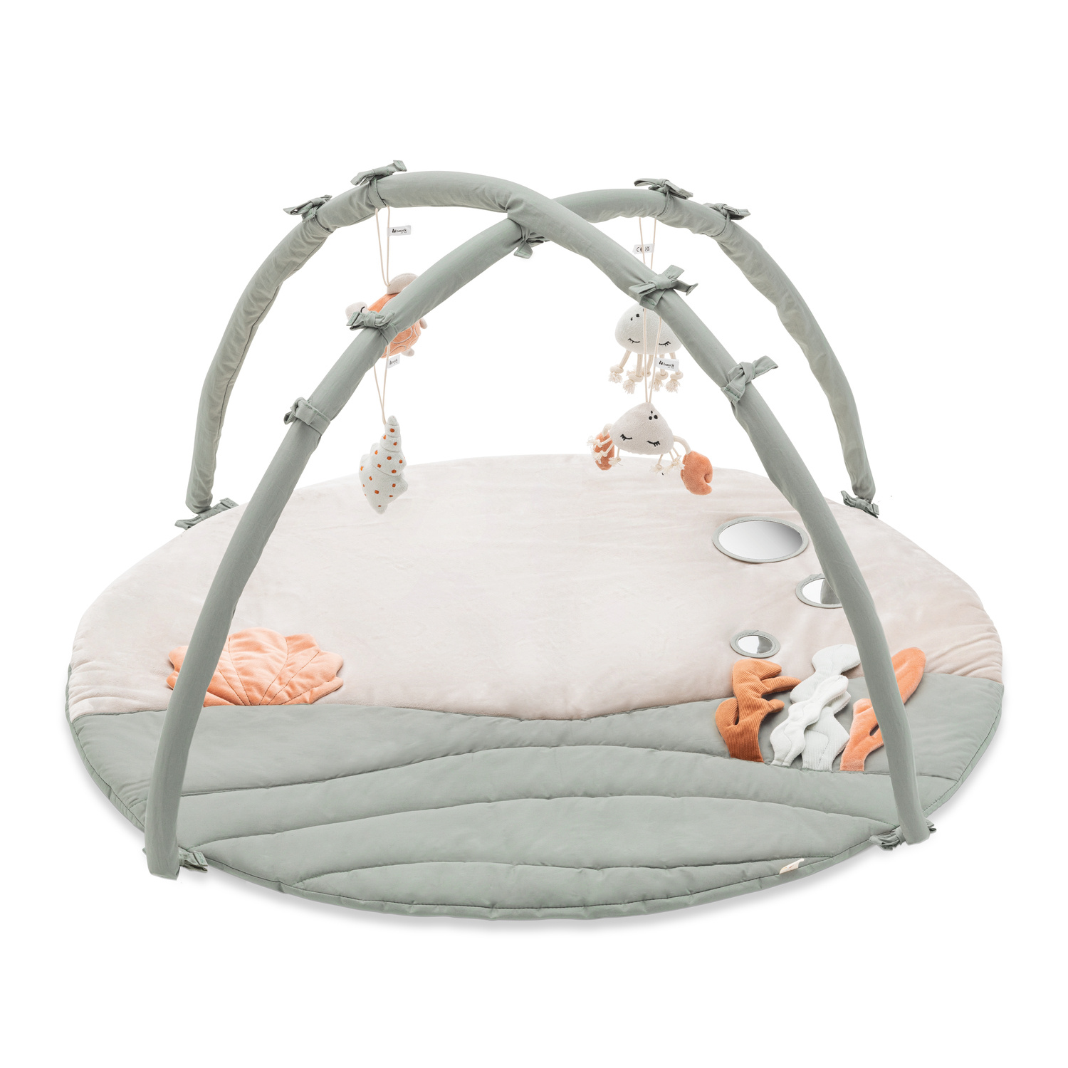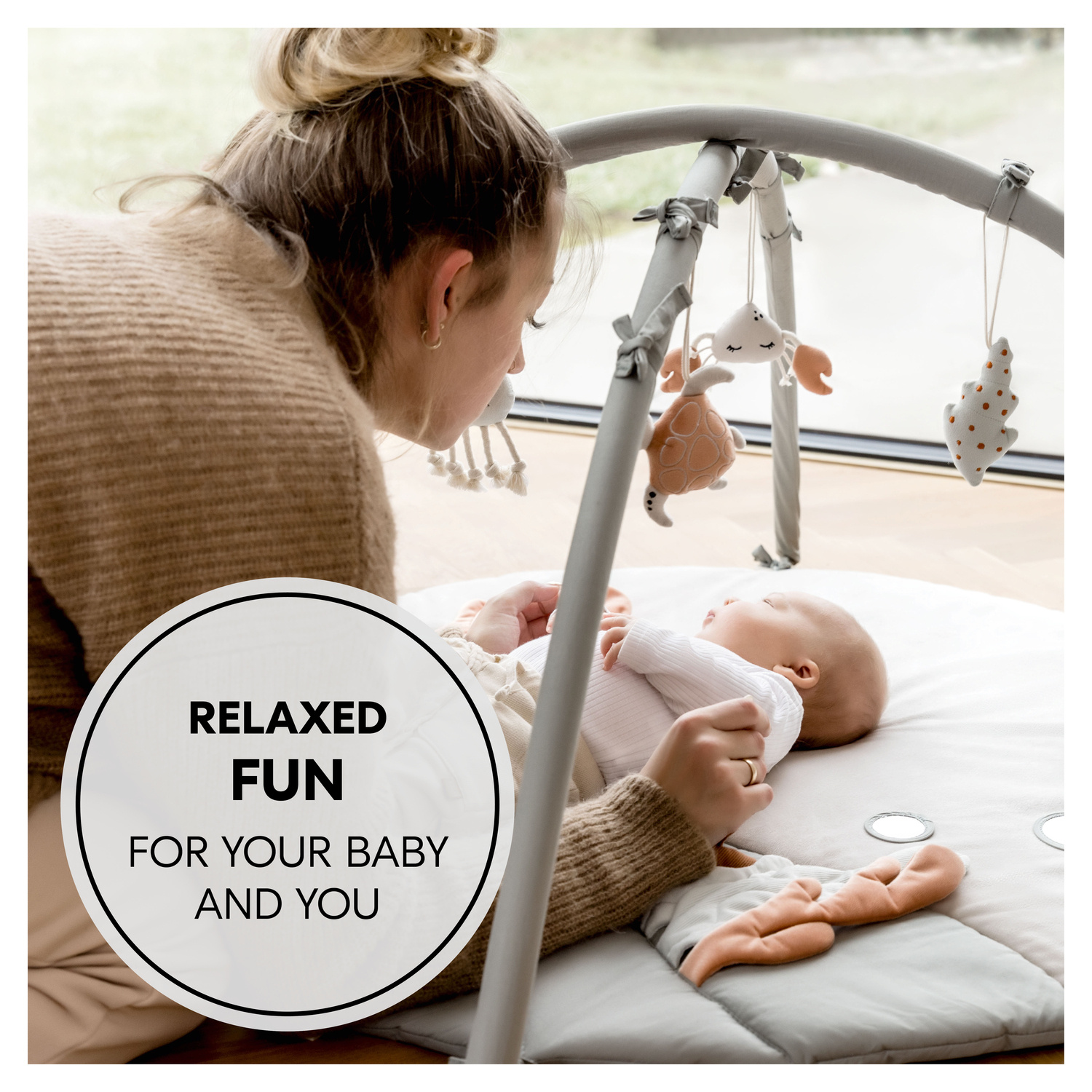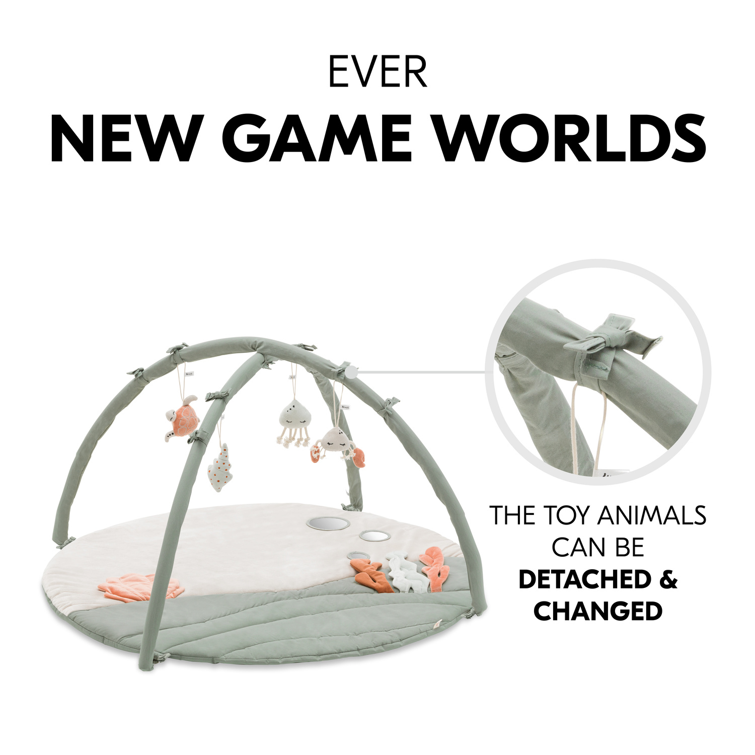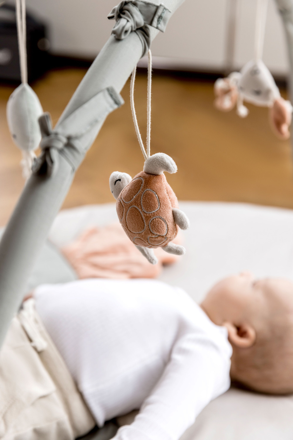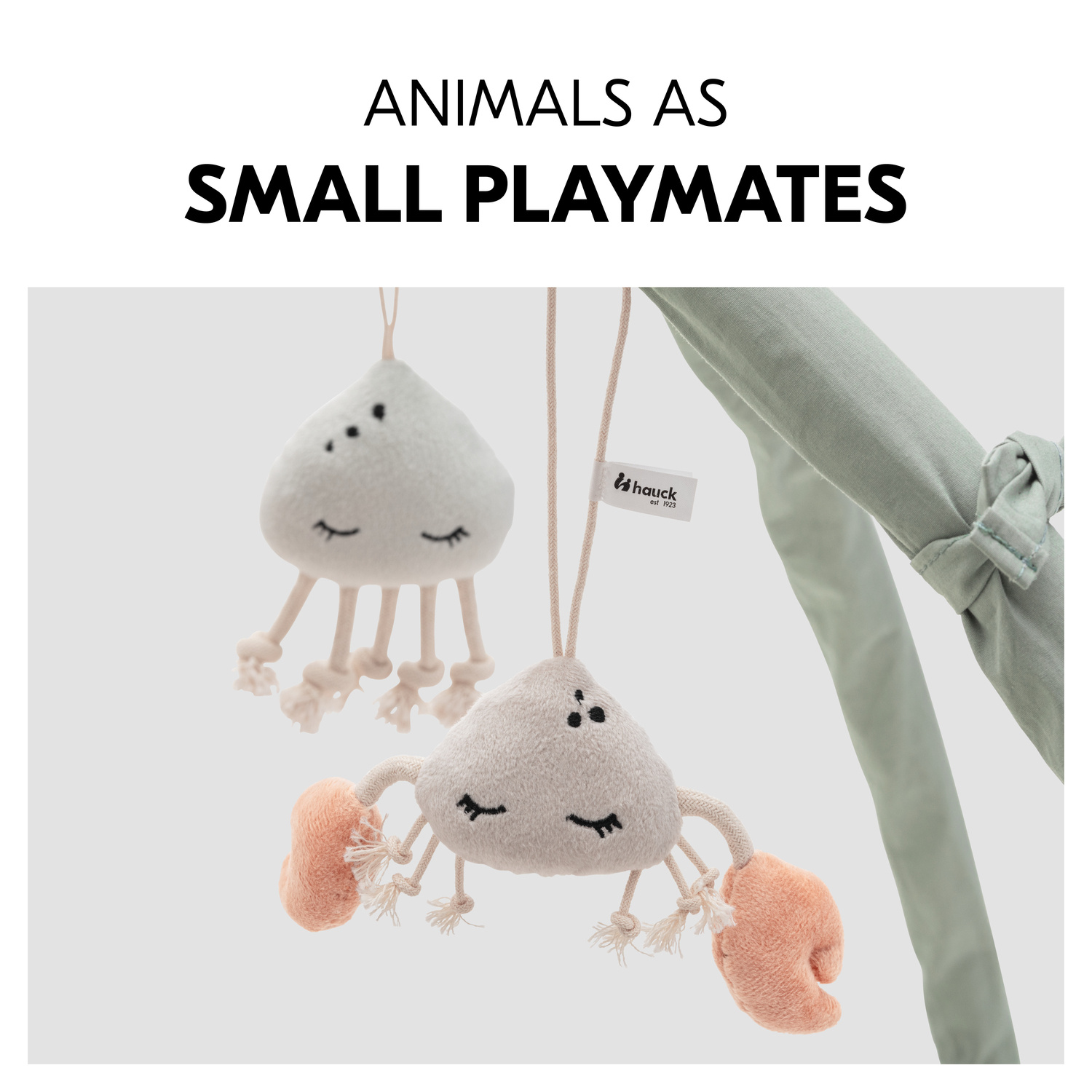Pískající krab, chrastící medúza, vyšívaná mušle a želva se zrcátkem : každé zvířátko je možné sundat, vyměnit, takže se svět kolem vašeho miminka bude neustále měnit.