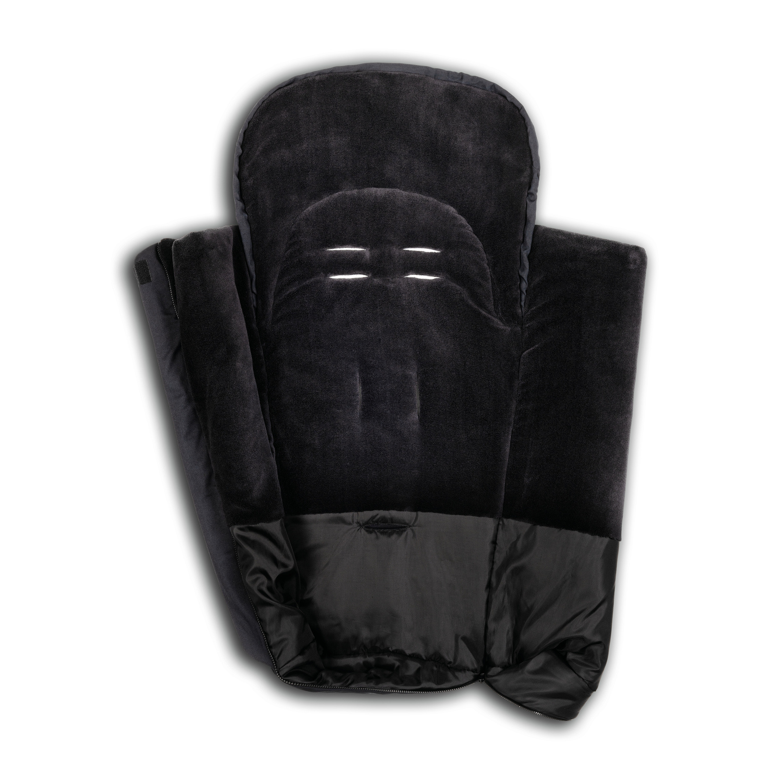 V tomto fusaku se vaše dítě bude cítit pohodlně za všech okolností. Když je chladno a větrno, lze horní část uzavřít jako kapuci. Když se oteplí, můžete přední část částečně otevřít pomocí zipu, sklopit ji a připevnit k boku pomocí dvou fixačních bodů. Pro snadný přístup můžete také obousměrný zip zcela otevřít, a když má dítě zablácené boty, můžete otevřít pouze spodní část, aby fusak zůstal čistý.
