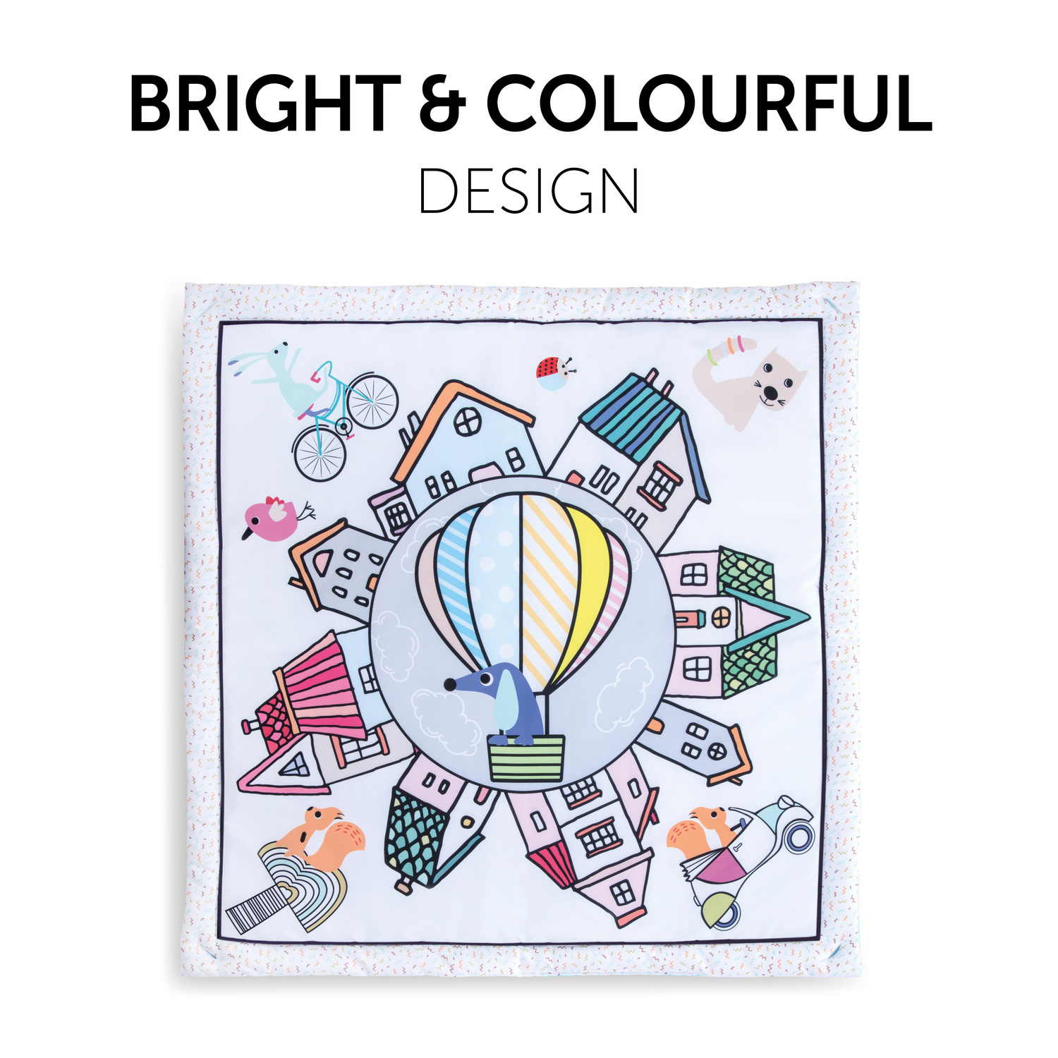 MĚKKÉ MATERIÁLY PRO VAŠE DĚŤÁTKO // Měkce polstrovaná deka na hraní nabízí vašemu děťátku ten nejvyšší stupeň pohodlí. Díky odnímatelné hrazdě ji můžete použít jako samostatnou dětskou deku nebo jako aktivity centrum.