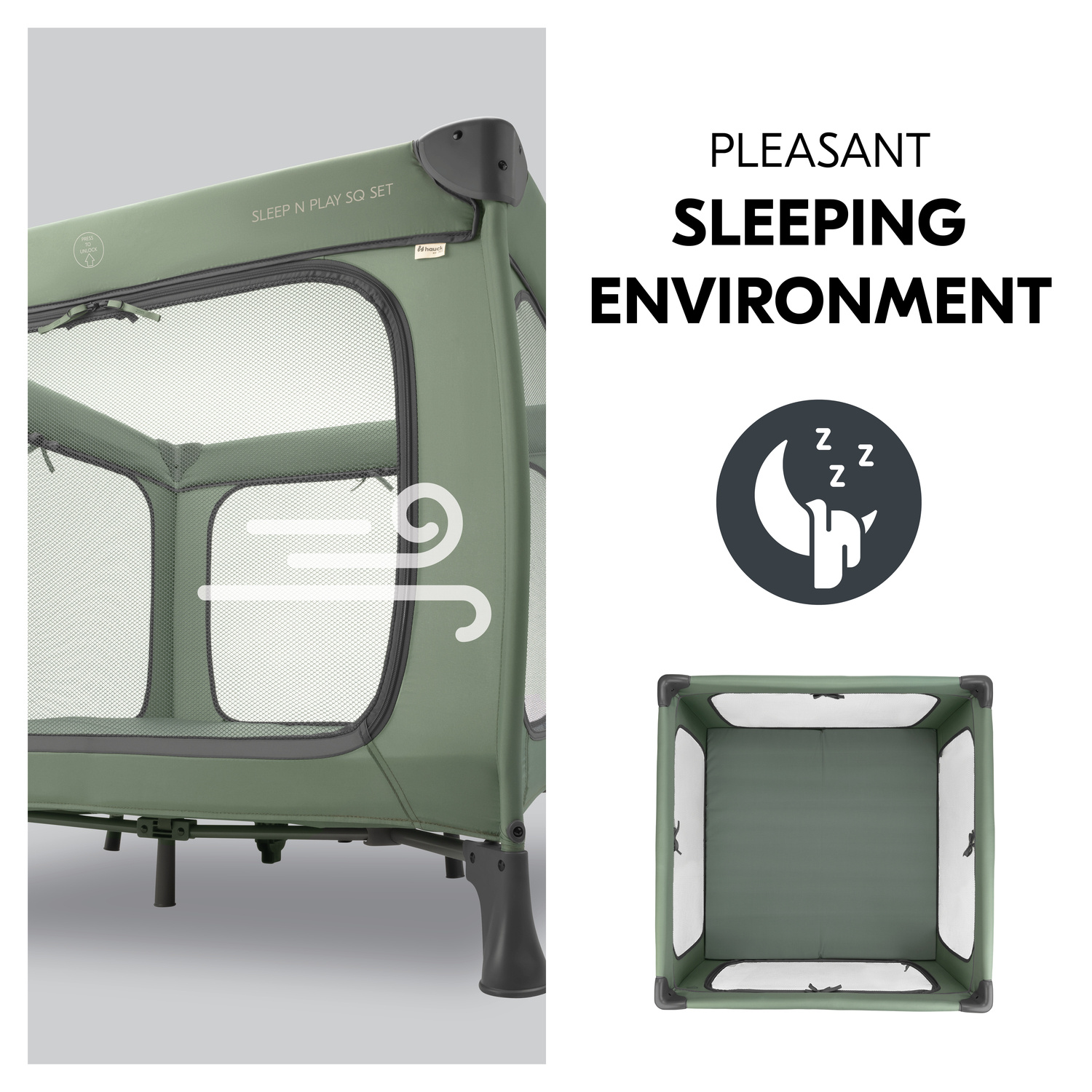 PROSTŘEDÍ PRO PŘÍJEMNÝ SPÁNEK // Čtyři velké síťované boky umožňují dostatečné proudění vzduchu pro příjemné a vzdušné prostředí. Navíc díky síťovaným bokům můžete mít své děťátko neustále pod kontrolou.
