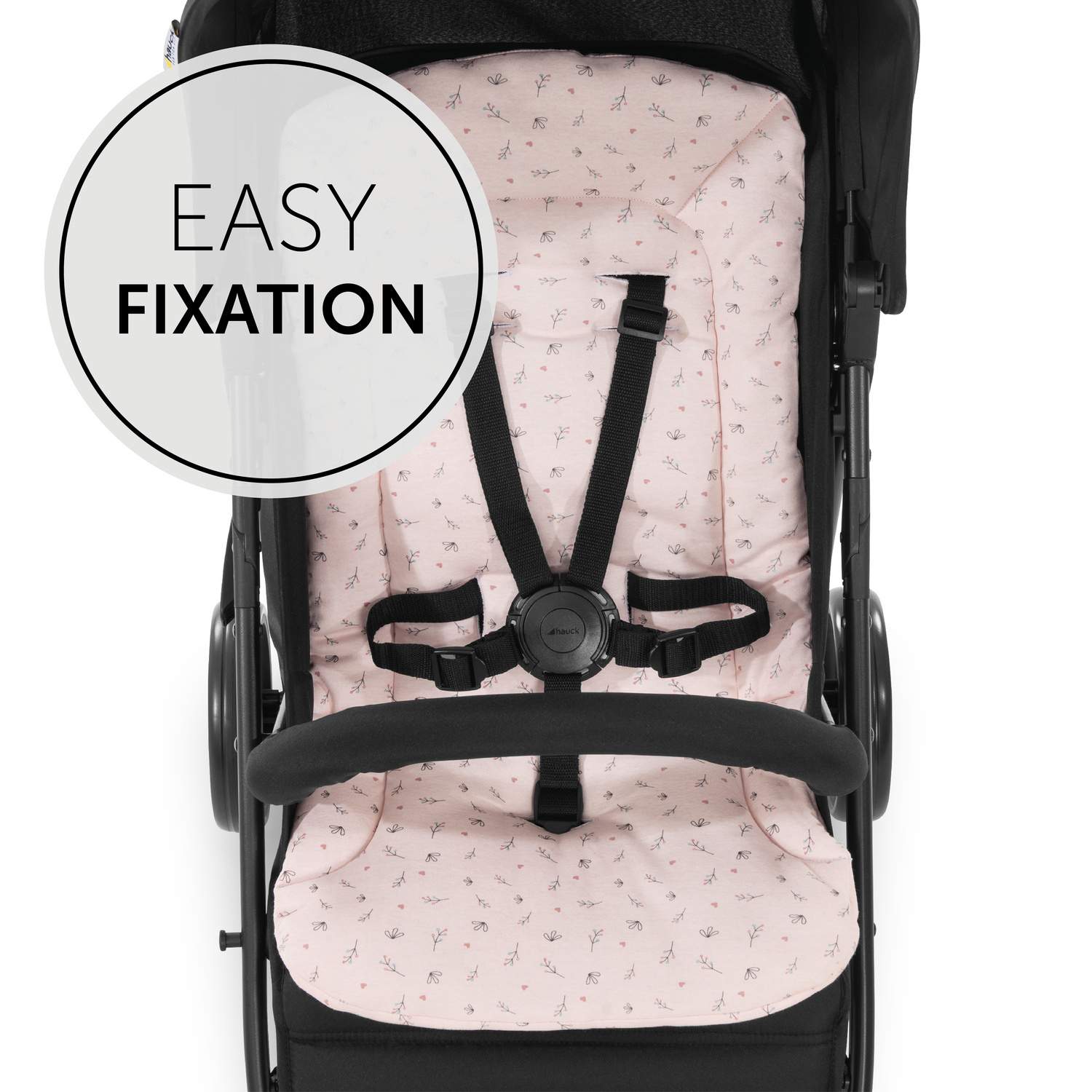 SNADNÁ INSTALACE // Podložku lze velmi snadno připevnit do kočárku. Sofistikovaný design přichází ze 7 otvory pro 5-ti bodový bezpečnostní pás s různou výškou.