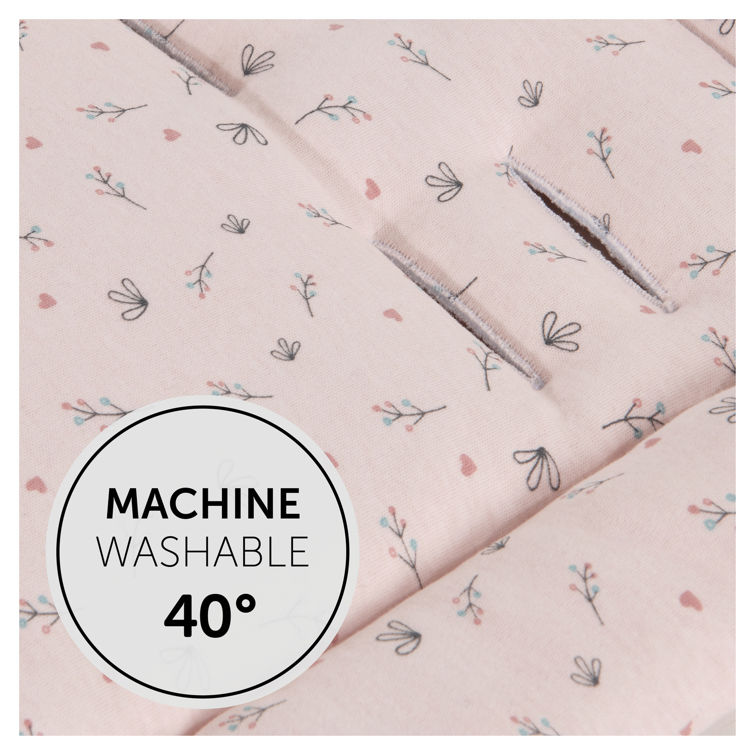 LZE PRÁT V PRAČCE // Pokud je potřeba podložku vyčistit, jednoduše ji z kočárku vyjmete a vyperete. Díky "easy-care" designu lze podložku prát v pračce na 40° C.