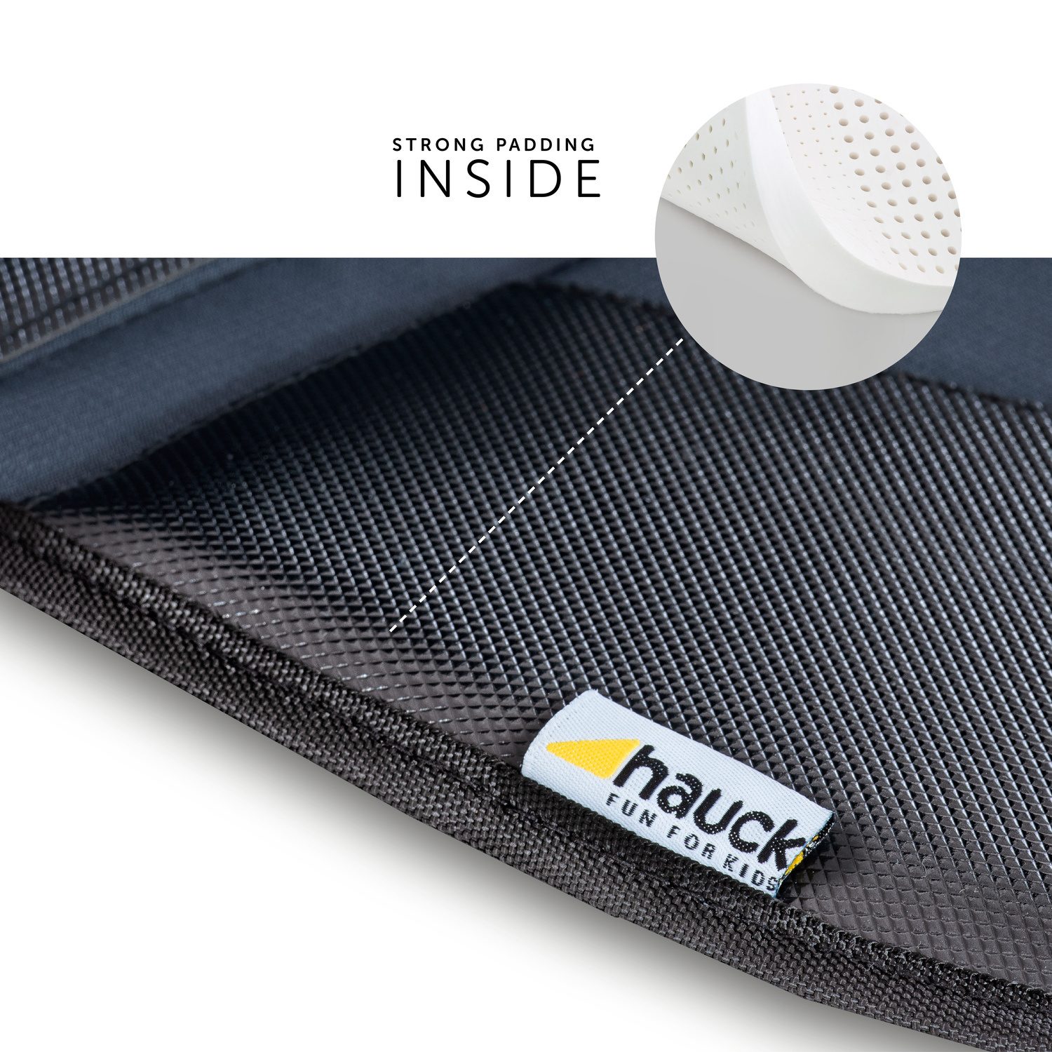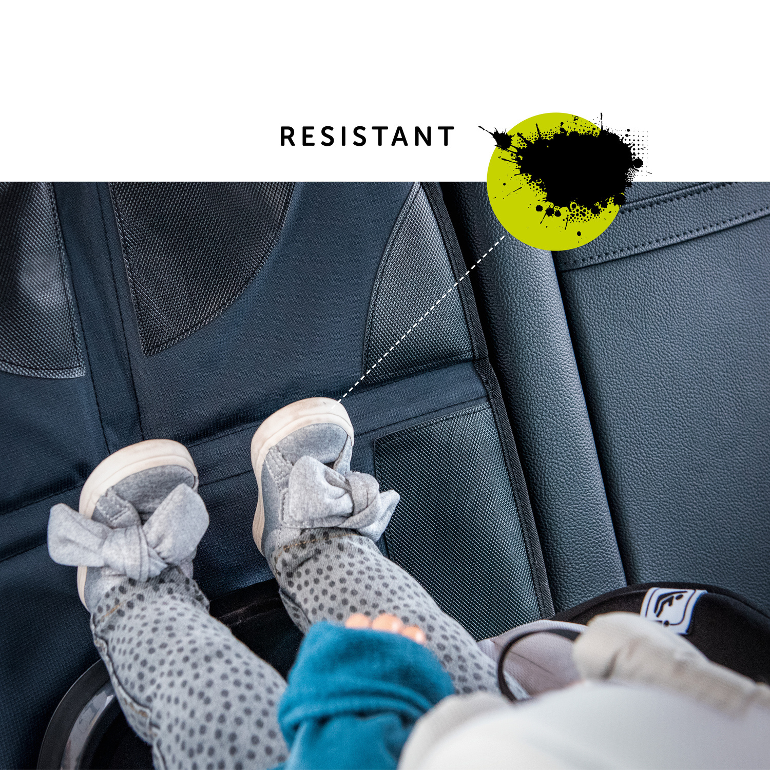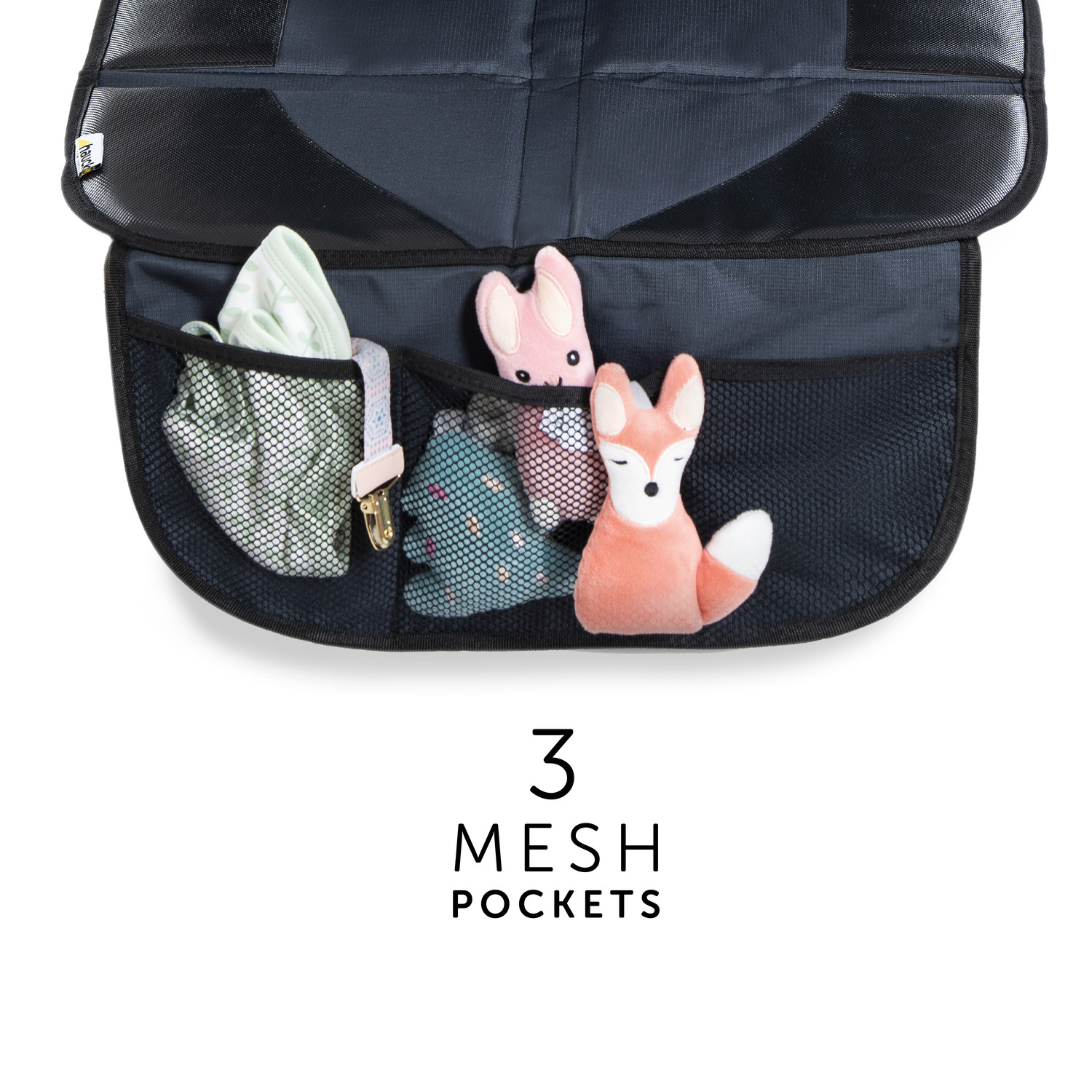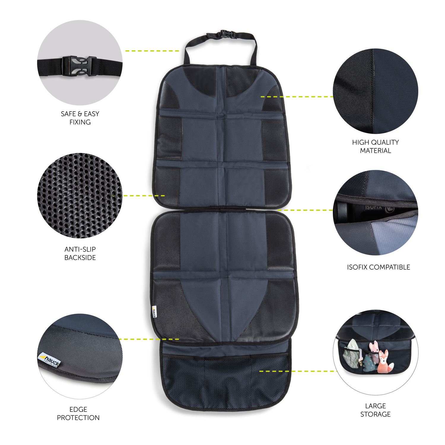 Podložka // Perfektní ochrana potahů autosedadla proti otlačeninám a škrábancům, které zapříčiňují dětské autosedačky. Součástí jsou otvory na ISOFIX a malé přední kapsy.